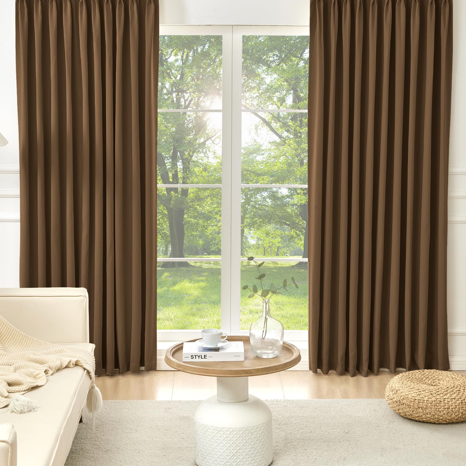 HEVUMYI カーテン 小窓 2枚セット 1級遮光 厚手ドレープカーテン 135cm丈 断熱 UVカット 防音 保温 防寒 昼夜目隠し 省エネ 無地 洗濯機対応 形態記憶加工済み リビング用 (ブラウン 幅100cm×丈135cm)