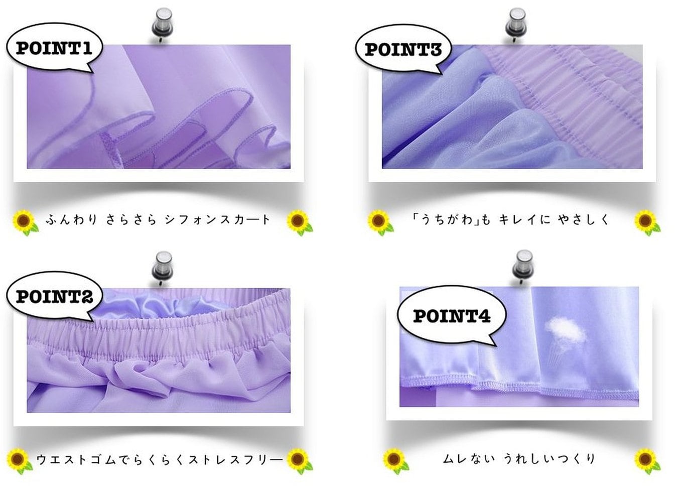 ウエストゴム:56-100cm 裾周り:340〜350Cm