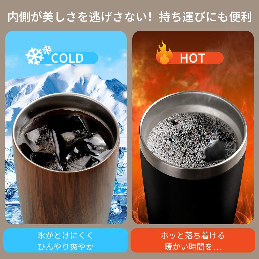 ALNAE タンブラー ふた付き 真空断熱 600ml 水筒 マグボトル コーヒーカップ 二重構造 保温保冷 直飲み 大容量 ビール コーヒー 直接ドリップ 木目調