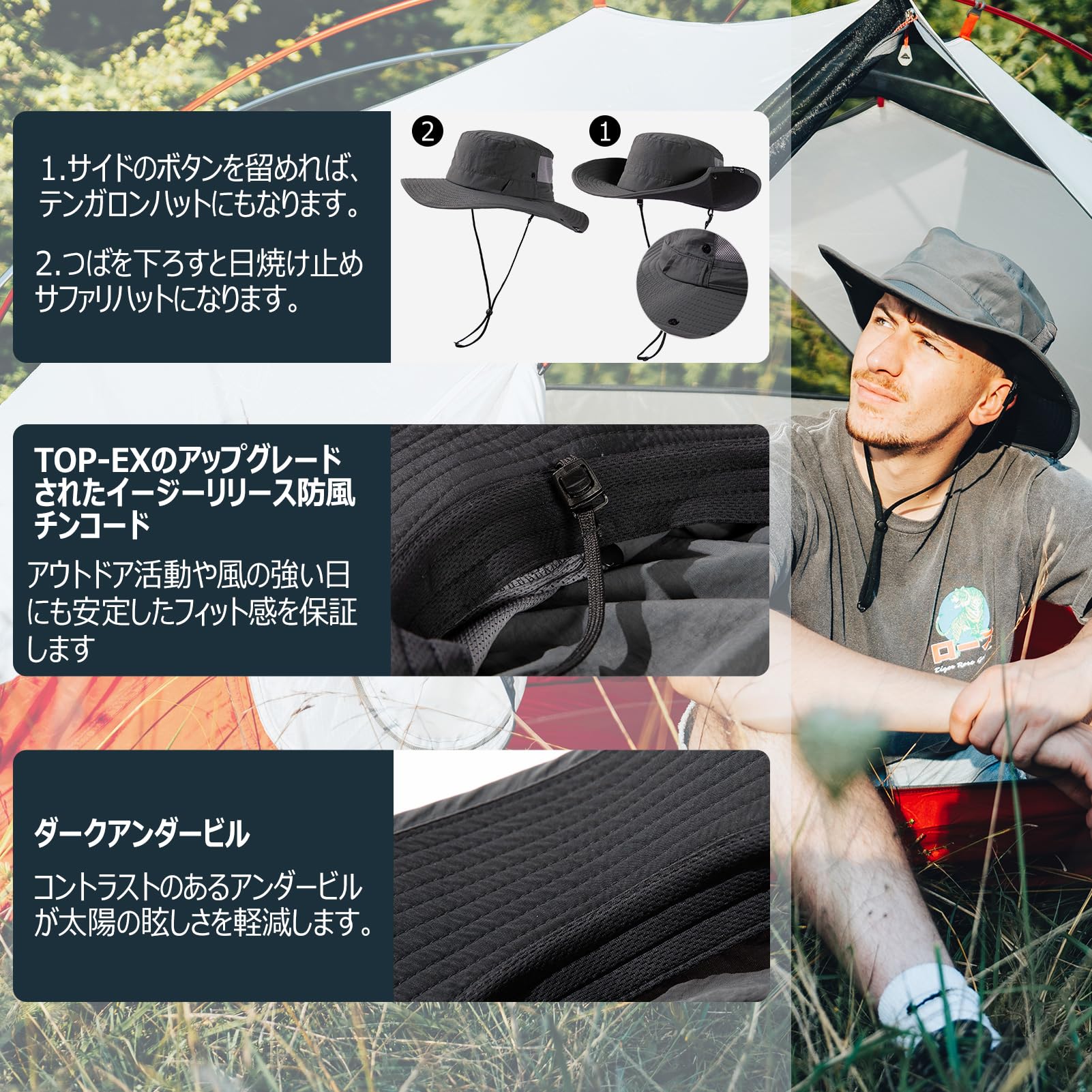 [TOP-EX] メンズ サファリハット アドベンチャーハット 折りたたみ ブーニーハット おしゃれ フィッシングハット 日よけ帽子 ハット 帽子 取り外す あご紐 春夏秋 つば広 ミリタリーハット uv アウトドア 自転車 登山 釣り ハイキング