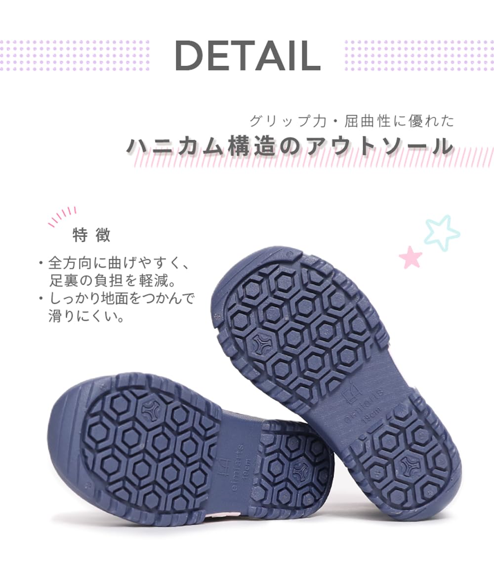 グリップ力や屈曲性に優れたハニカム構造のアウトソール