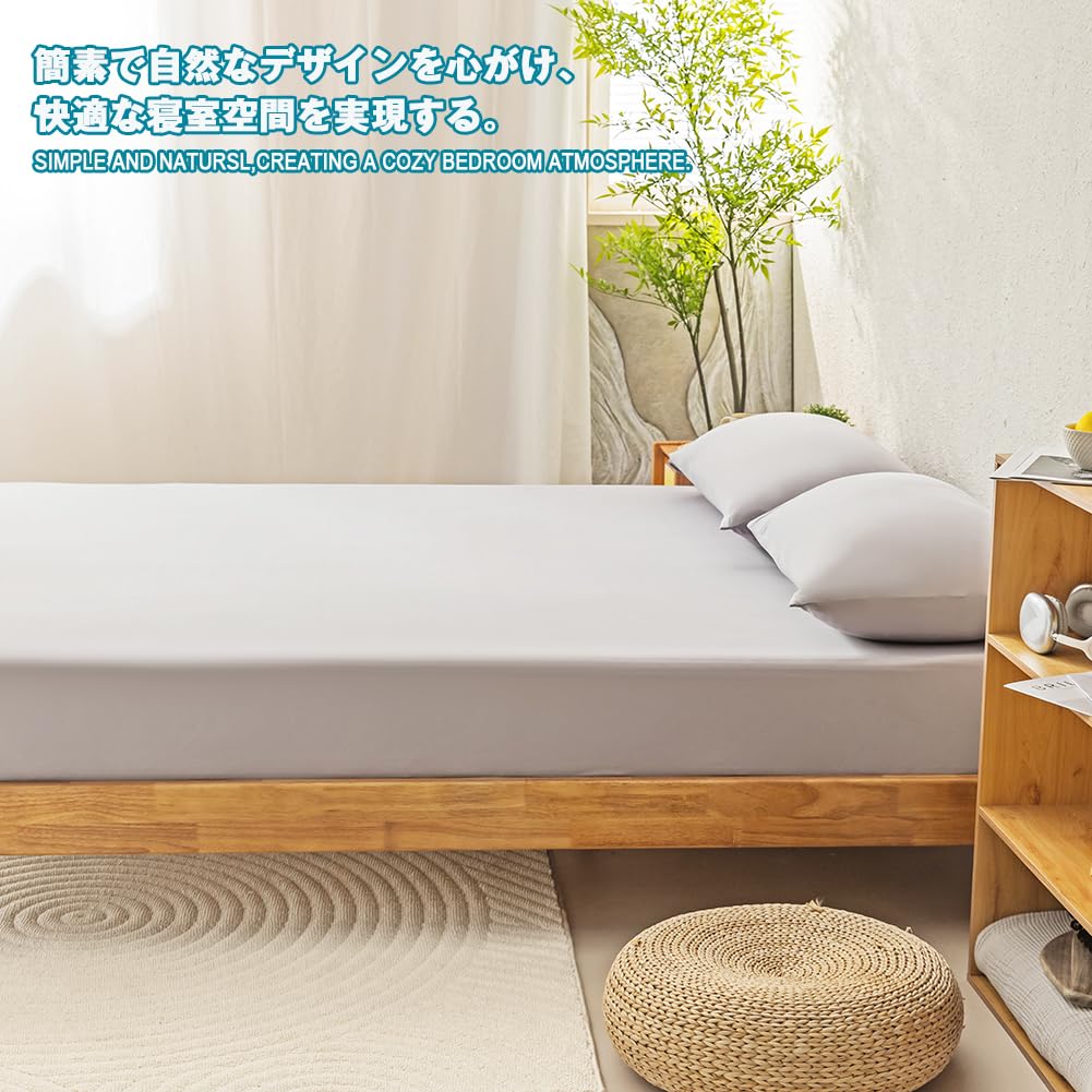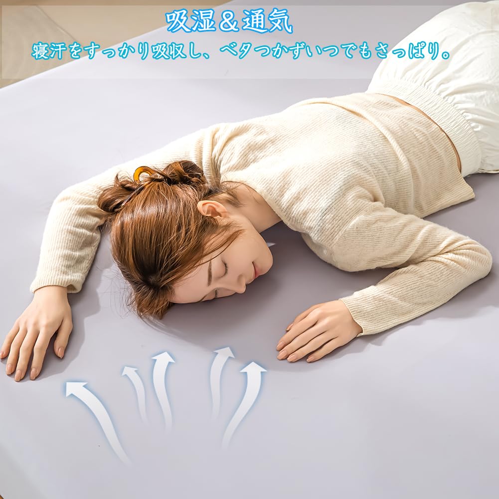 「360度ゴムバンド設計 厚いマットレスも完全フィット」伸縮性抜群、最大27cm厚のマットレスにもピタッと密着(サイズ調整可能)。伸縮率200%を実現しながら型崩れゼロ。全週ズレ防止ゴムバンド付きで、寝返りをしてもズレないです。