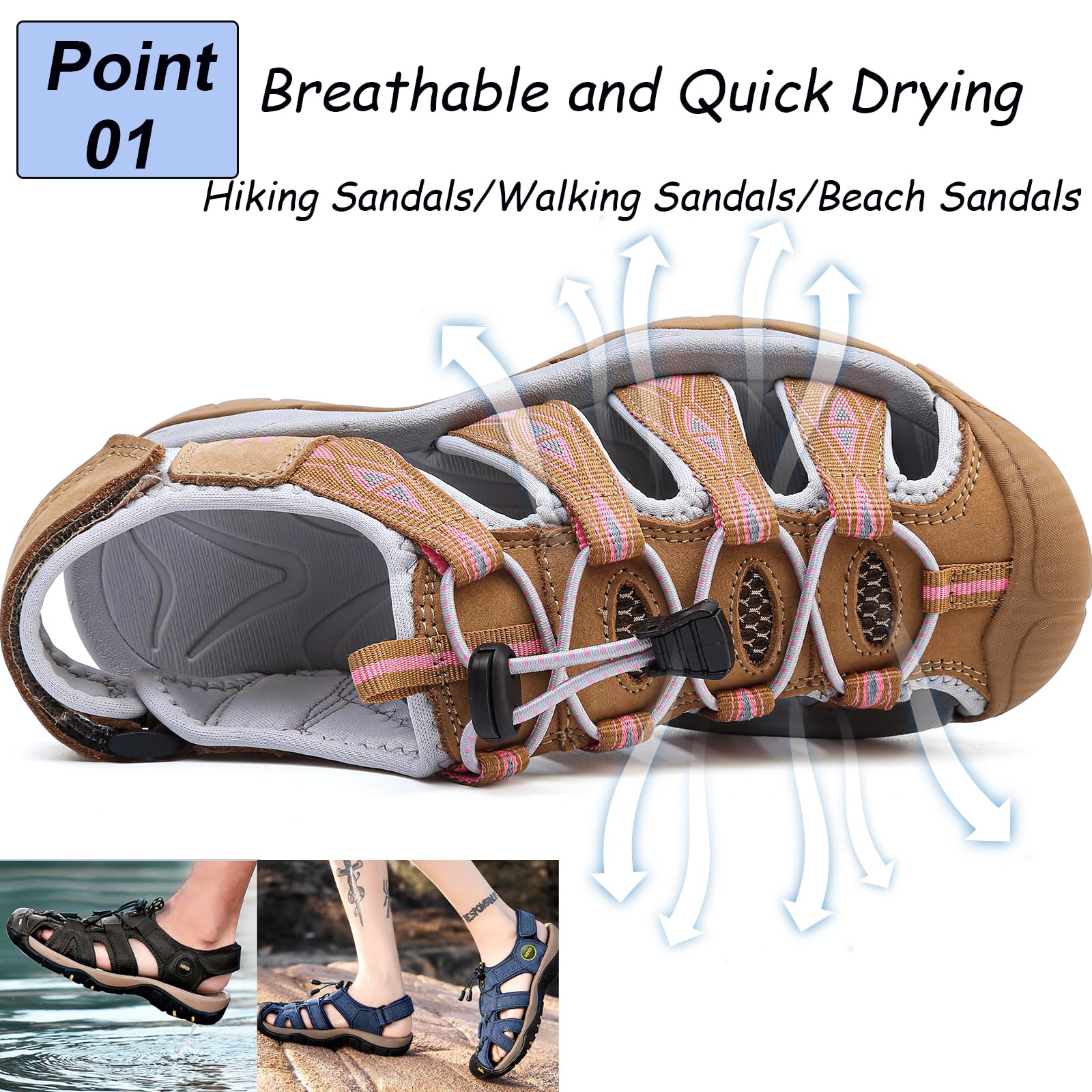 【通気性が抜群】スポーツサンダルメッシュの表面は柔らかく、通気性が良い、高品質の通気性の良いメッシュ面を選び、美しく、快適さが共存しています。