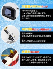 【自動吸水機能&可視化タンク搭載】この電動水鉄砲は450mlタンクを搭載しており、一度の給水でたっぷり遊ぶことができます。従来の注水方法に自動給水方法を追加しました。水鉄砲の先端を水につけると、すぐに自動的に水をタンクに吸い込みます。給水はたった15秒で完了し、水を補給する手間を大幅に短縮できます。操作方法はシンプルで、タンク内の水の残量も視覚的にわかるようになっているので、初心者でも扱いやすいです。手動の給水口にミネラルウォーターボトルを取り付けて、水の容量を増やすこともできます。