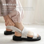 【靴擦れゼロを目指したストレスフリー設計】伸縮性のあるサテン生地のストラップで足に優しくフィットし、靴擦れを防止。足に食い込まない幅感で、窮屈さを感じず快適な履き心地。幅広・甲高・外反母趾の方にもおすすめの設計。