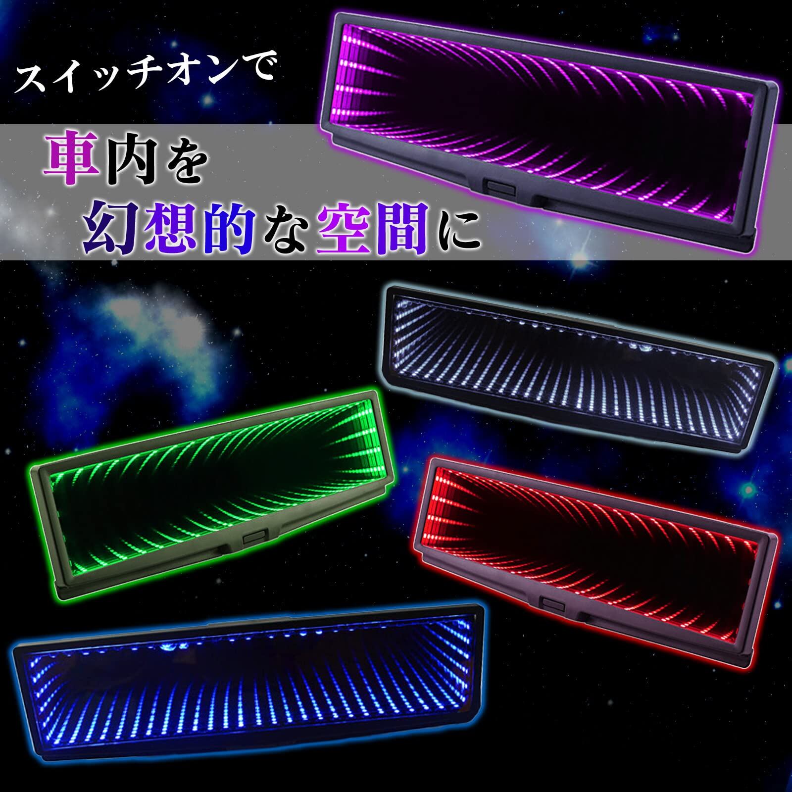 Meliore ルームミラー LED ブラックホール ワイドミラー バック ミラー インテリア カスタム パーツ 電池式 車内 幻想的 ライト 平面 発光 スイッチ 社外 ON/OFF レッド 赤