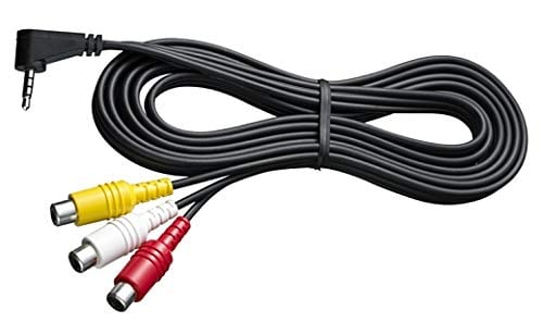 AV入力用変換ケーブル。ポータブルAV機器の映像/音声出力(RCA)を4極3.5φミニへ変換し対応機種のビデオ端子へ接続する際に使用するケーブル。