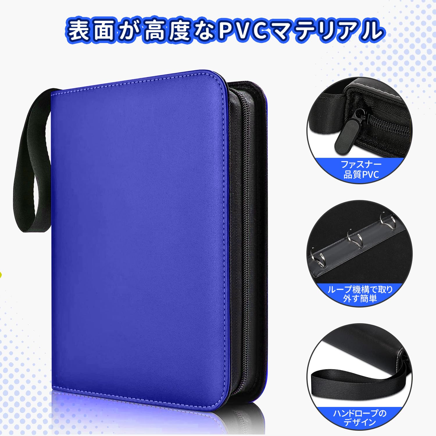 カードファイル カードバインダー 9ポケット 900枚収納 50枚入り 表面の防水性と耐摩耗性のトレカファイル ポータブルファスナー カードシート他のゲームカードを集める (9ポケット ブルー)