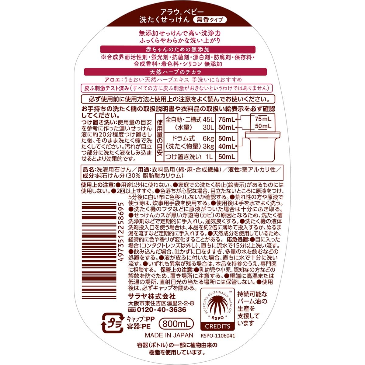 arau.(アラウ) アラウベビー 洗濯せっけん 無香タイプ 本体 800mL