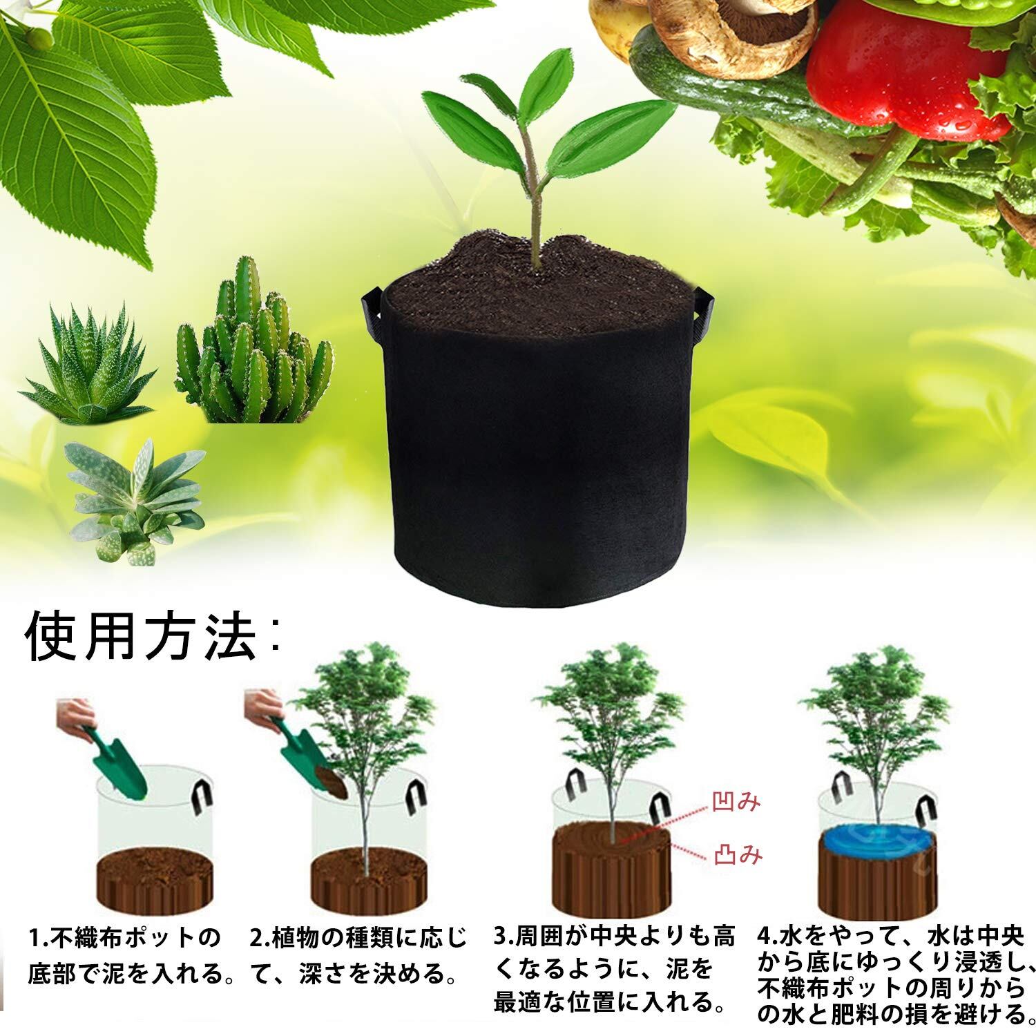 高品質の厚手の不織布と裏地から作られ、通気性、浸透性が良い。植物育成に大きな役に立ちます!再利用可能な分解性材料で、簡単に腐食しない。軽量で、空間を占めない、ベランダや庭には使えます。花や果物などの植物を栽培でき、普通の植物栽培鉢よりもっと便利です。無公害、環境に優しい植え袋です。