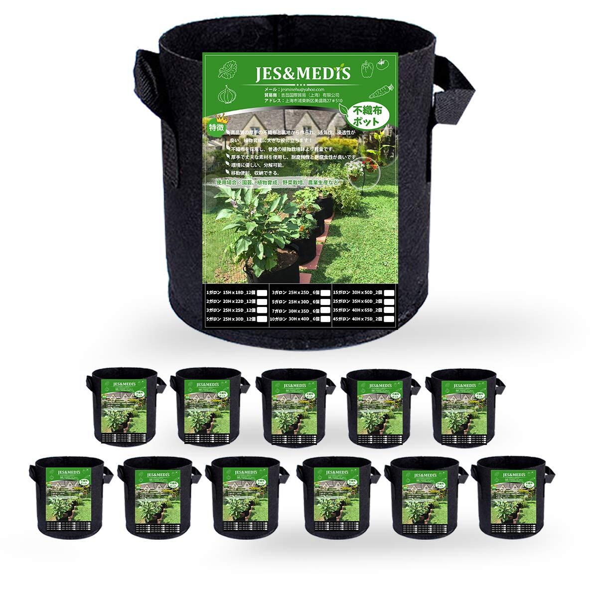 12個セット 1ガロン プランター 布鉢 栽培袋 フェルト 不織布ポット 植え袋 ガーデン 通気性 diy 園芸 植物育成 野菜栽培 大容量 JES&MEDIS (12 1ガロン_15Hx18D)
