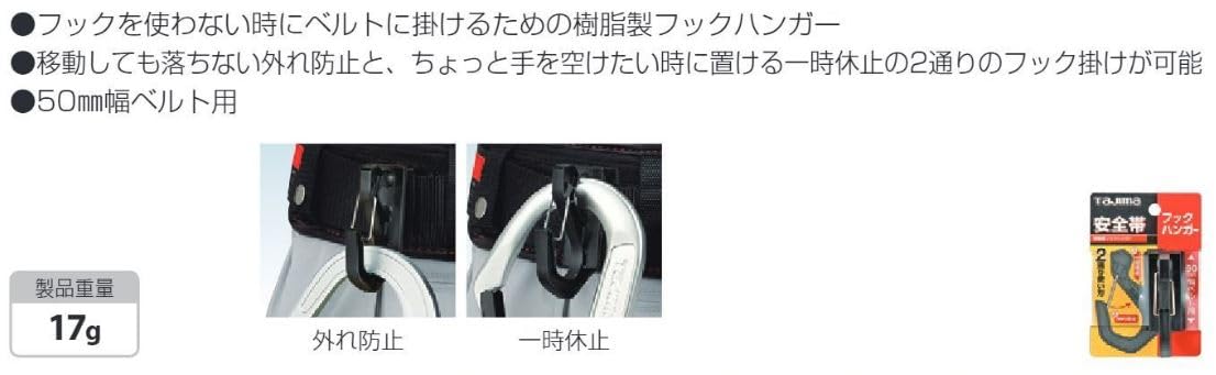 タジマ 安全帯 フックハンガー ベルト幅50mm用 軽量な樹脂製 TA-FH