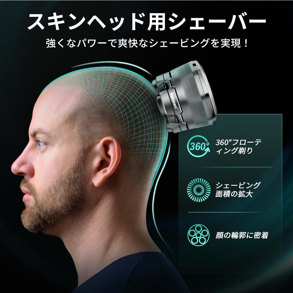 「IPX6防水機能&お風呂剃り対応可能」kensenスキンヘッド用シェーバーはIPX6基準を満たした防水モデルとなります。お風呂剃りにも対応てき、シェービングフォームを使用した肌にやさしいシェービングが可能です。このスキンヘッドシェーバーは髭が硬い人と敏感肌の方におすすめ。※水や液体に浸さないでください。
