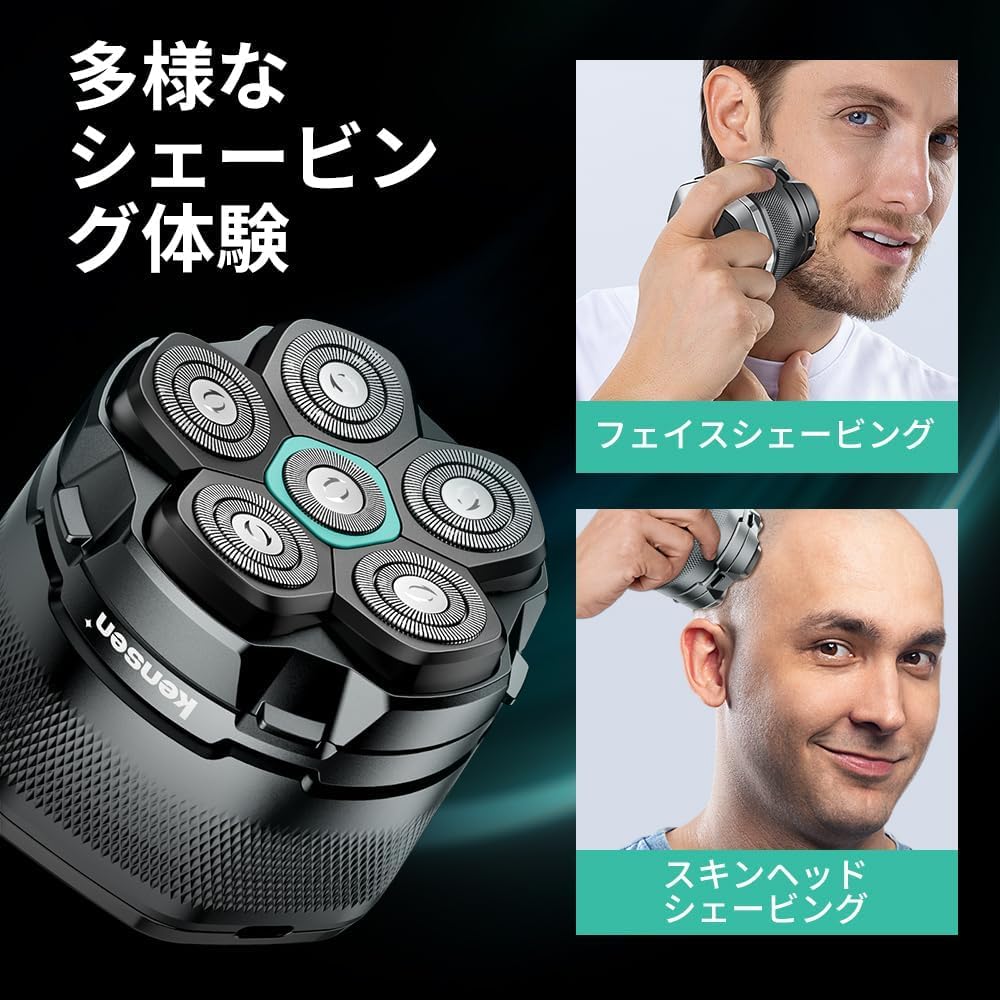 kensen スキンヘッド用シェーバー 99枚刃 6Dスキンヘッド マグネット着脱式 ハゲ用 坊主用 頭髪シェーバー パワーフル 坊主頭 髭剃り 男女兼用 IPX6防水 乾湿両用 スキンヘッド用バリカン メンズシェーバー 回転式 LEDディスプレイ TYPE-C 急速充電式 父の日 (ブラック)