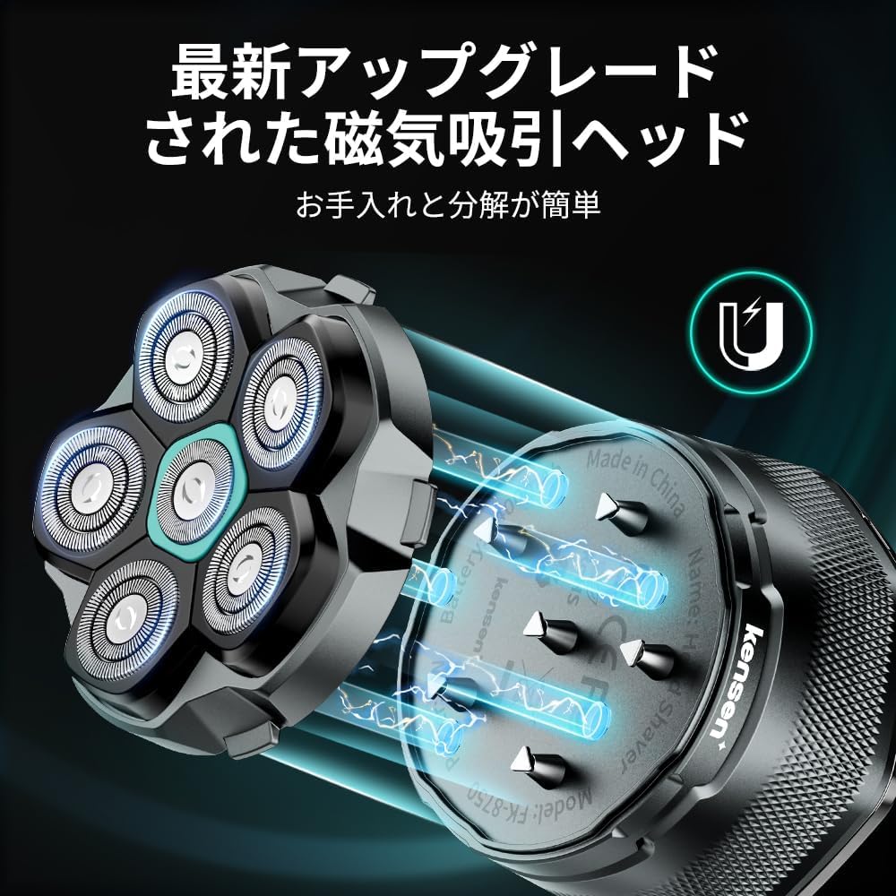 【人気商品】kensen スキンヘッド用シェーバー 99枚刃 6Dスキンヘッド マグネット着脱式 ハゲ用 坊主用 頭髪シェーバー パワーフル 坊主頭 髭剃り 男女兼用 IPX6防水 乾湿両用 スキンヘッド用バリカン メンズシェーバー 回転式 LEDディスプレイ TYPE-C 急速充電式 父の日 (ブラック) | asaRulu0511