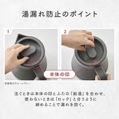 【転倒湯漏れ防止ケトル】誤って本体を倒してしまってもお湯漏れを最小限に防ぐ設計なので安心してお使い頂けます。この機能は事故防止のために必要不可欠で、お子様がケトルを倒してもやけどしない安全な構造です。