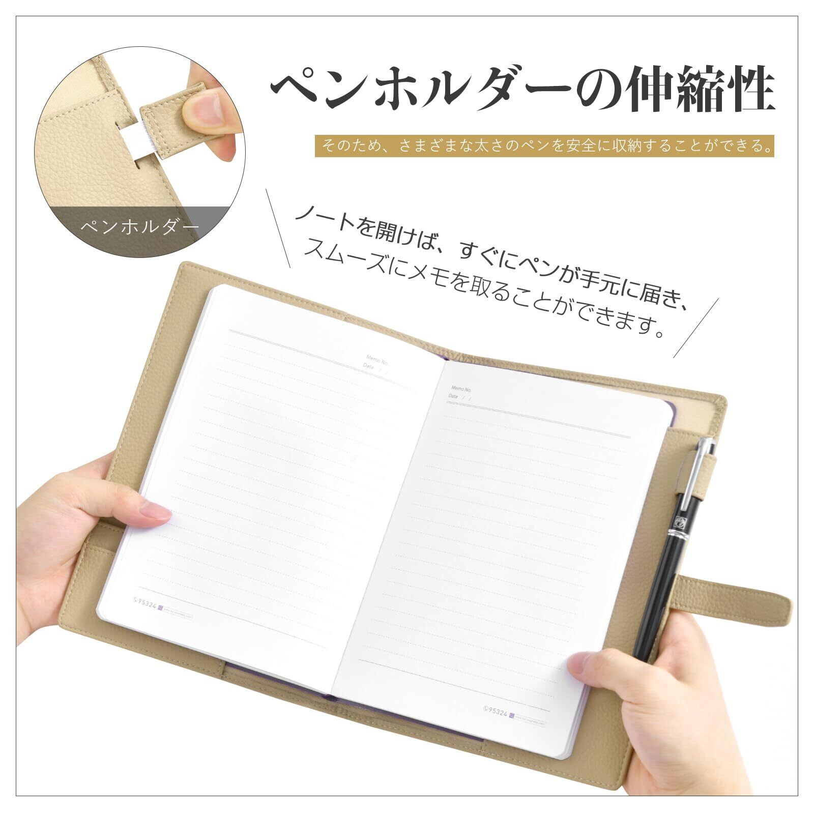 Wasenn ノートカバー A5 手帳カバー レザー 2冊収納 厚手手帳対応 リングノート対応 A5判 大学ノート ブックカバー A5 カード収納 ペンホルダー付き 手帳式 ハードカバー アーモンド
