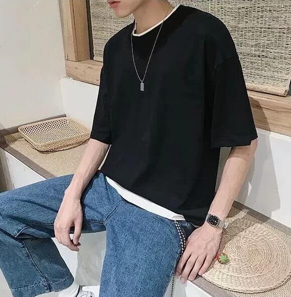 ?重ね着スタイルでおしゃれ感UP!:このTシャツは重ね着風のデザインが特徴で、シンプルながらもおしゃれな印象を与えます。スタイリングの幅が広がり、様々なコーディネートに対応可能です。