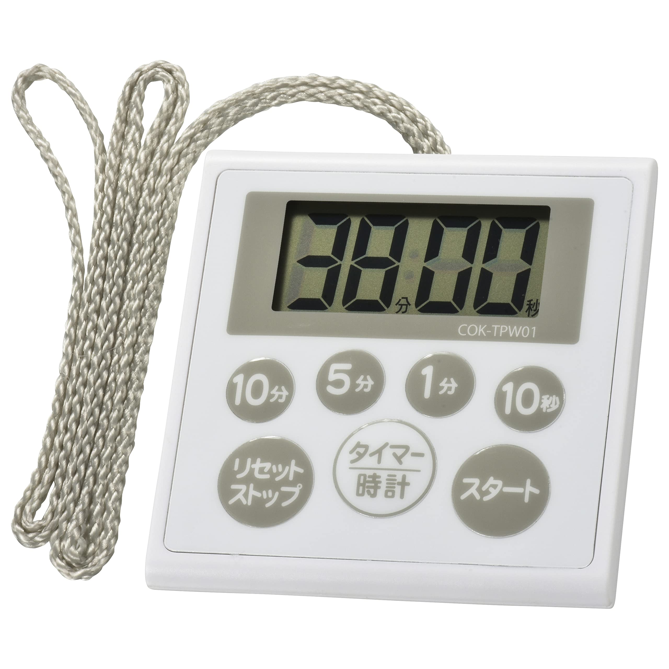 【在庫処分】オーム電機 キッチンタイマー(デジタル) ホワイト 幅7.7×高さ7.9×奥行1.2cm
