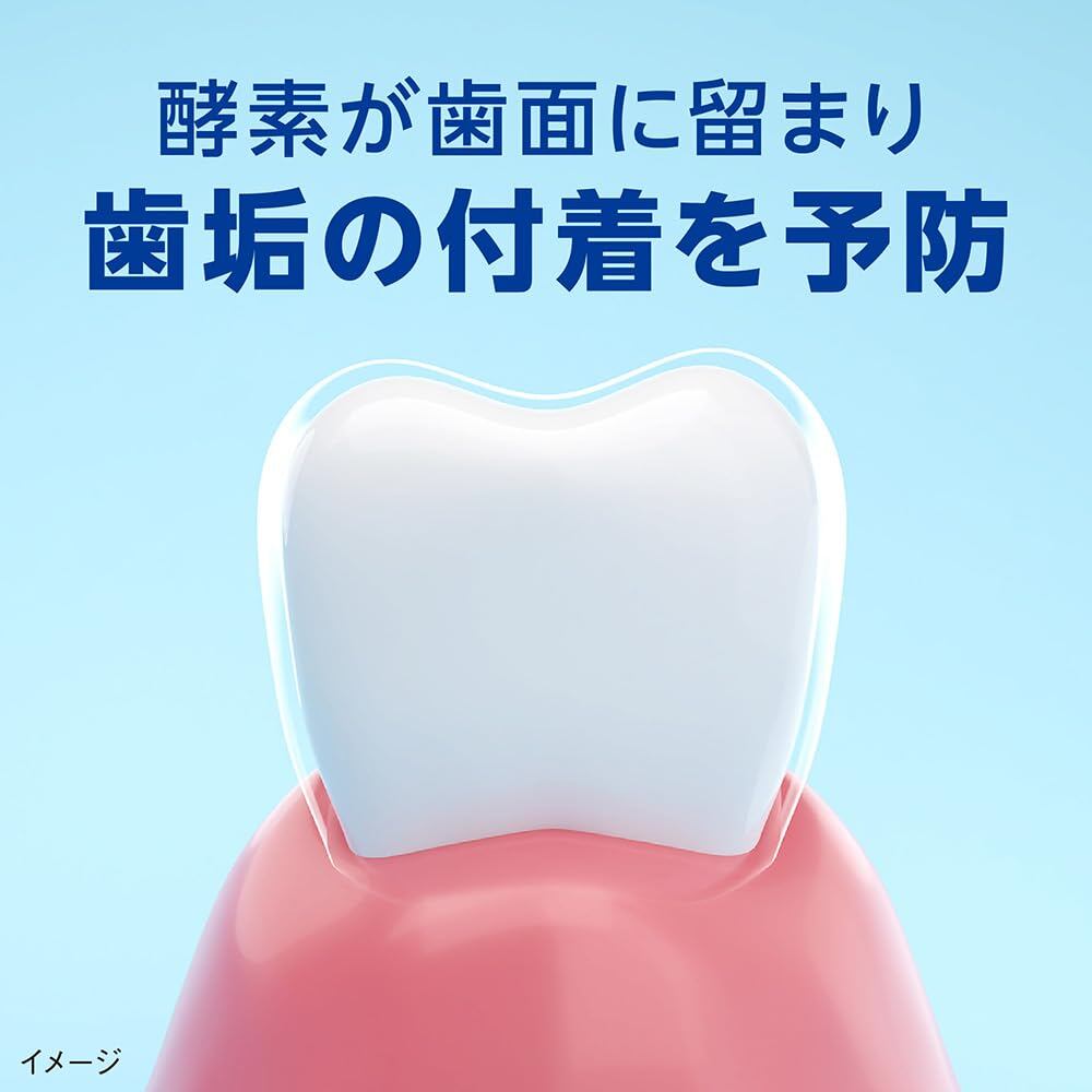 1.ハブラシが届かないすみずみの歯垢を酵素が分解・除去し、ツルツルな歯へ。さらに、歯みがき後も酵素が歯面に留まり、歯垢の付着を予防