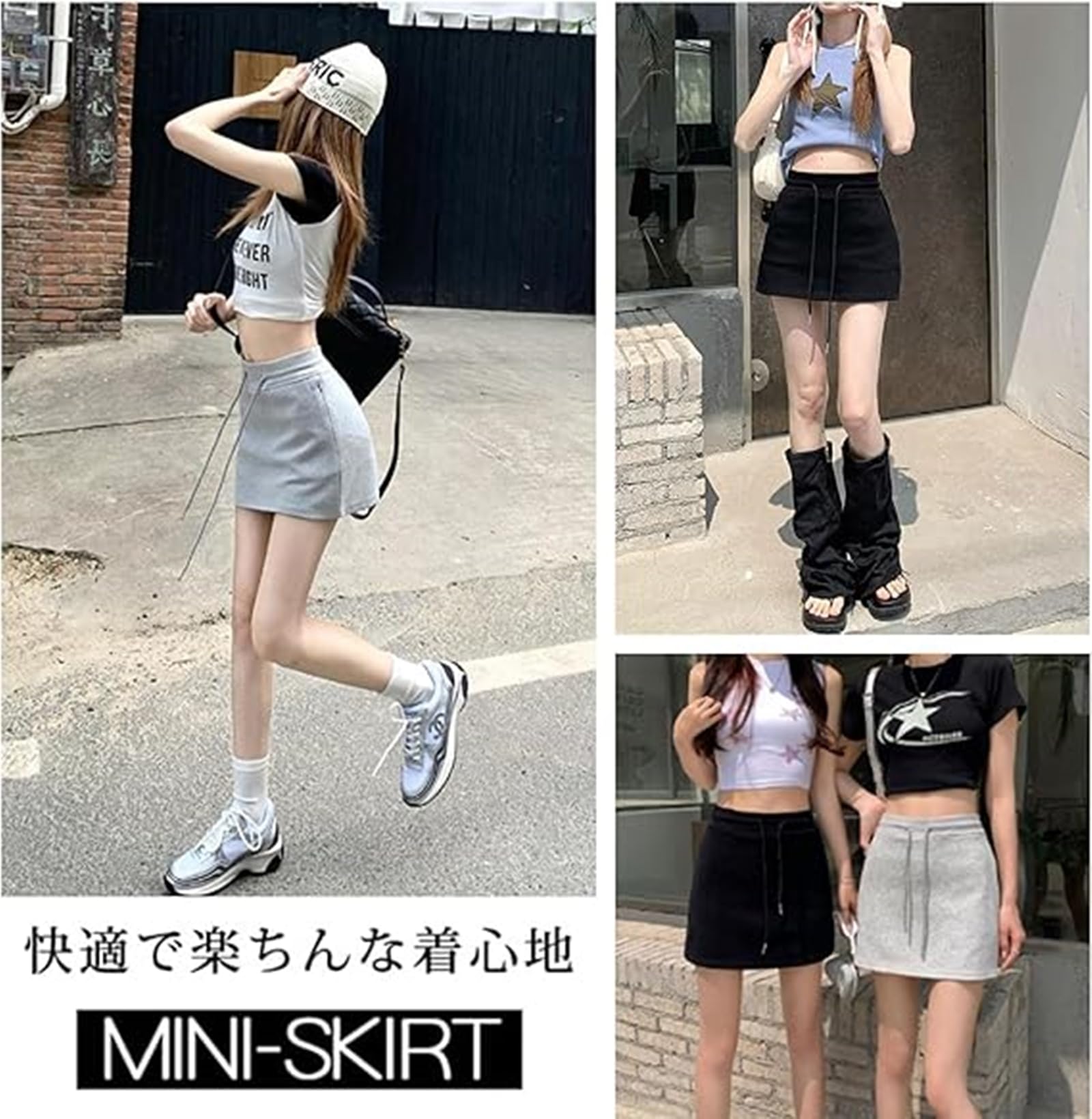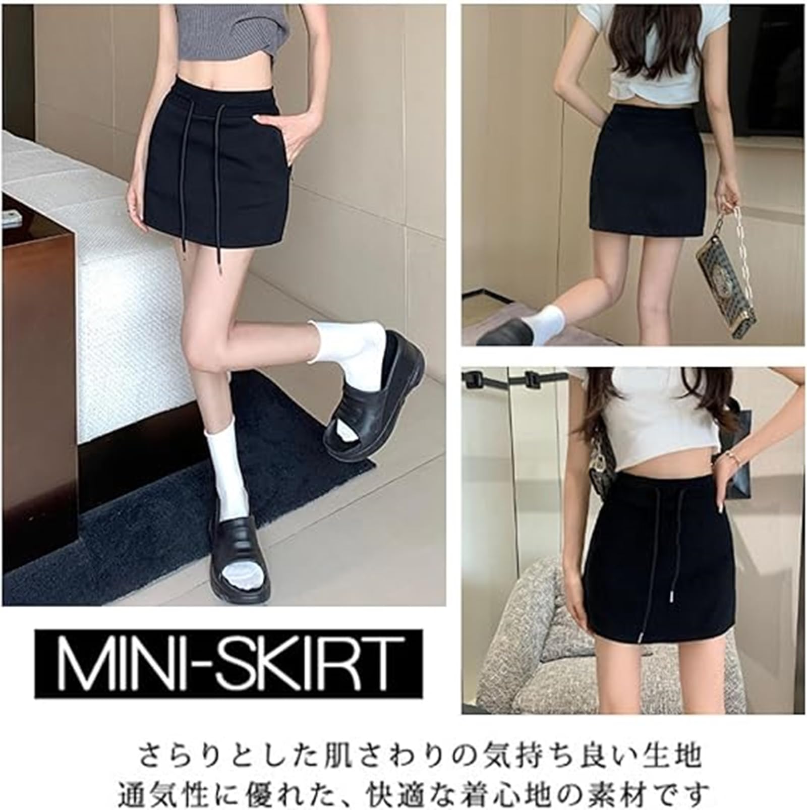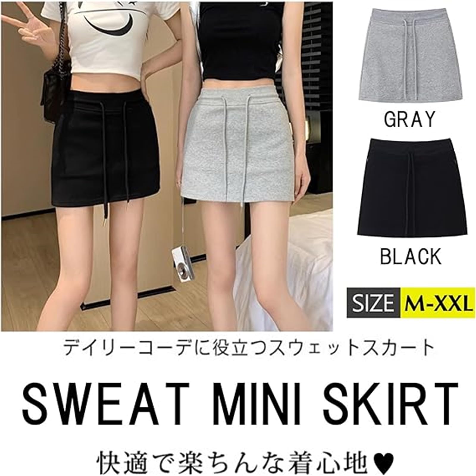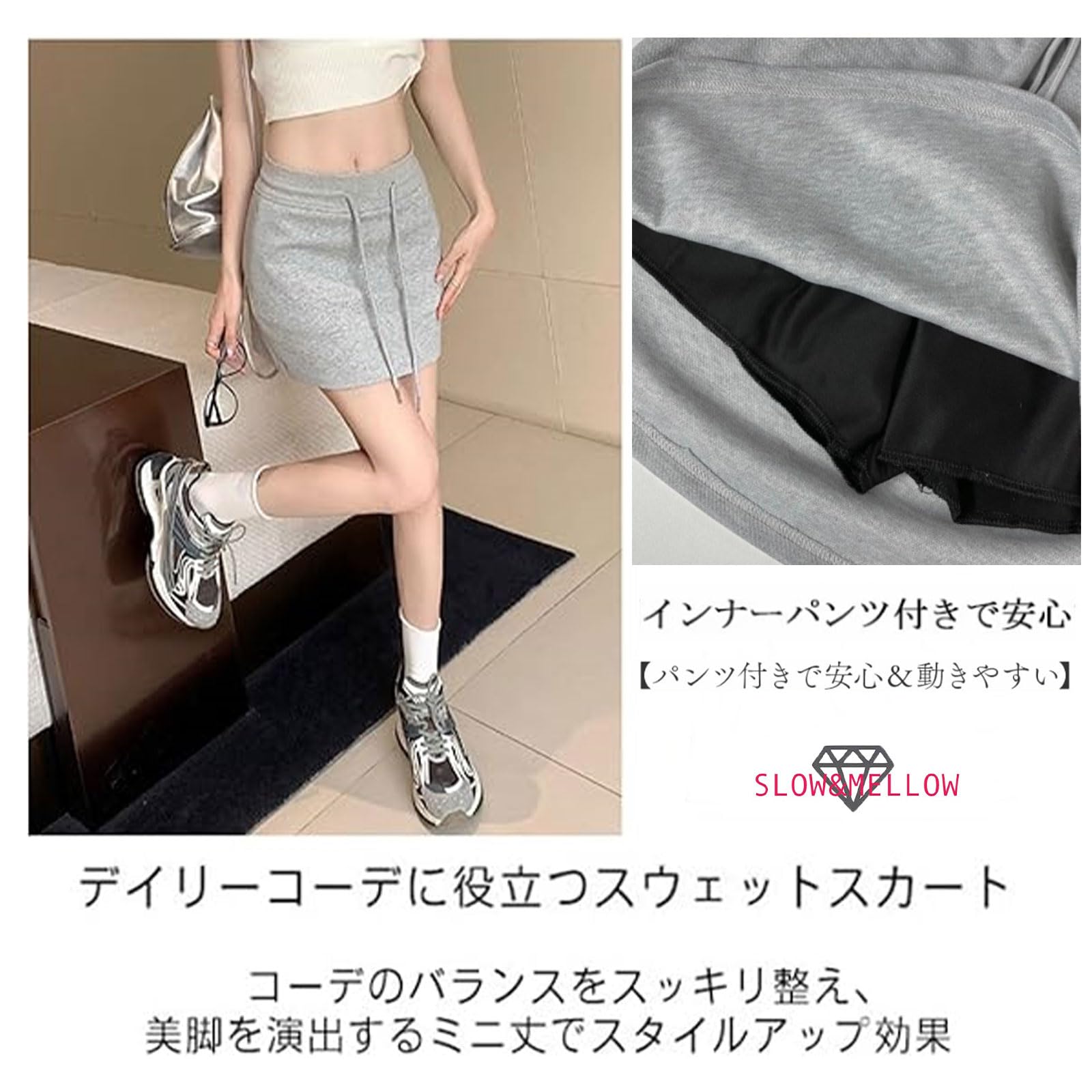 [SLOW&MELLOW] 楽ちん スウェット ミニスカート カジュアル リラックス着 レディース 部屋着 ルームウェア Aライン ストレッチ ウエストゴム ドローコード ミニ 丈 スカート シンプル 無地 2カラー