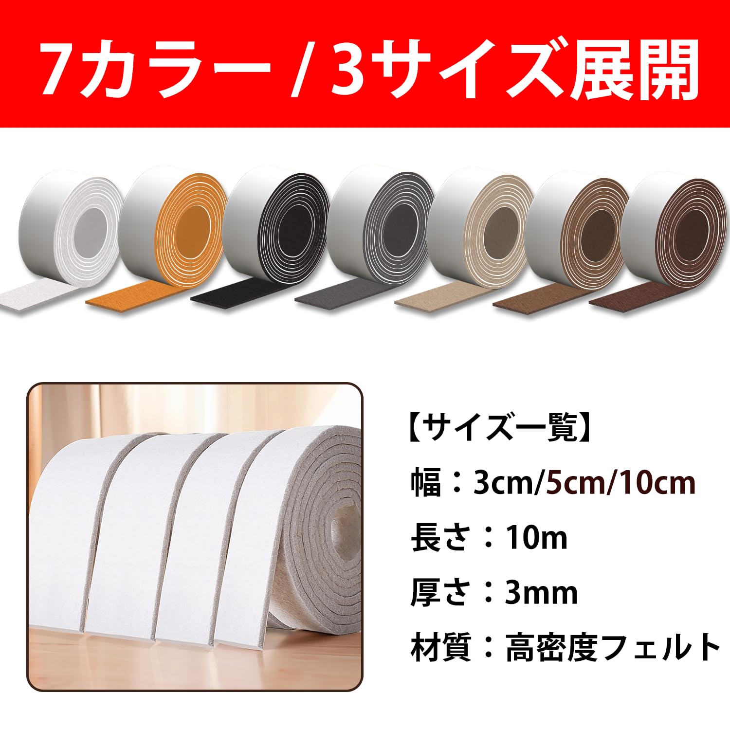 【新春セール】WFNRIN 7色 フェルトテープ 床保護 厚手 強粘着 椅子の足・イス・机・ソファー・テーブル脚 保護 キズ防止・傷防止 家具保護 フローリング 滑り止め・滑り止めマット 防音 防振 足カバー 脚カバー いすのあし シート パッド フェルトシート 請求書対応可 (ライトブラウン 幅3cm x 長さ1m、1巻) | asaRulu0511