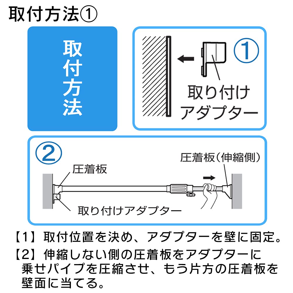 ●ねじやくぎを使わずに壁にしっかりと固定できる伸縮棒です。●圧着部をL字型にすることで、十分な耐荷重を実現しました。