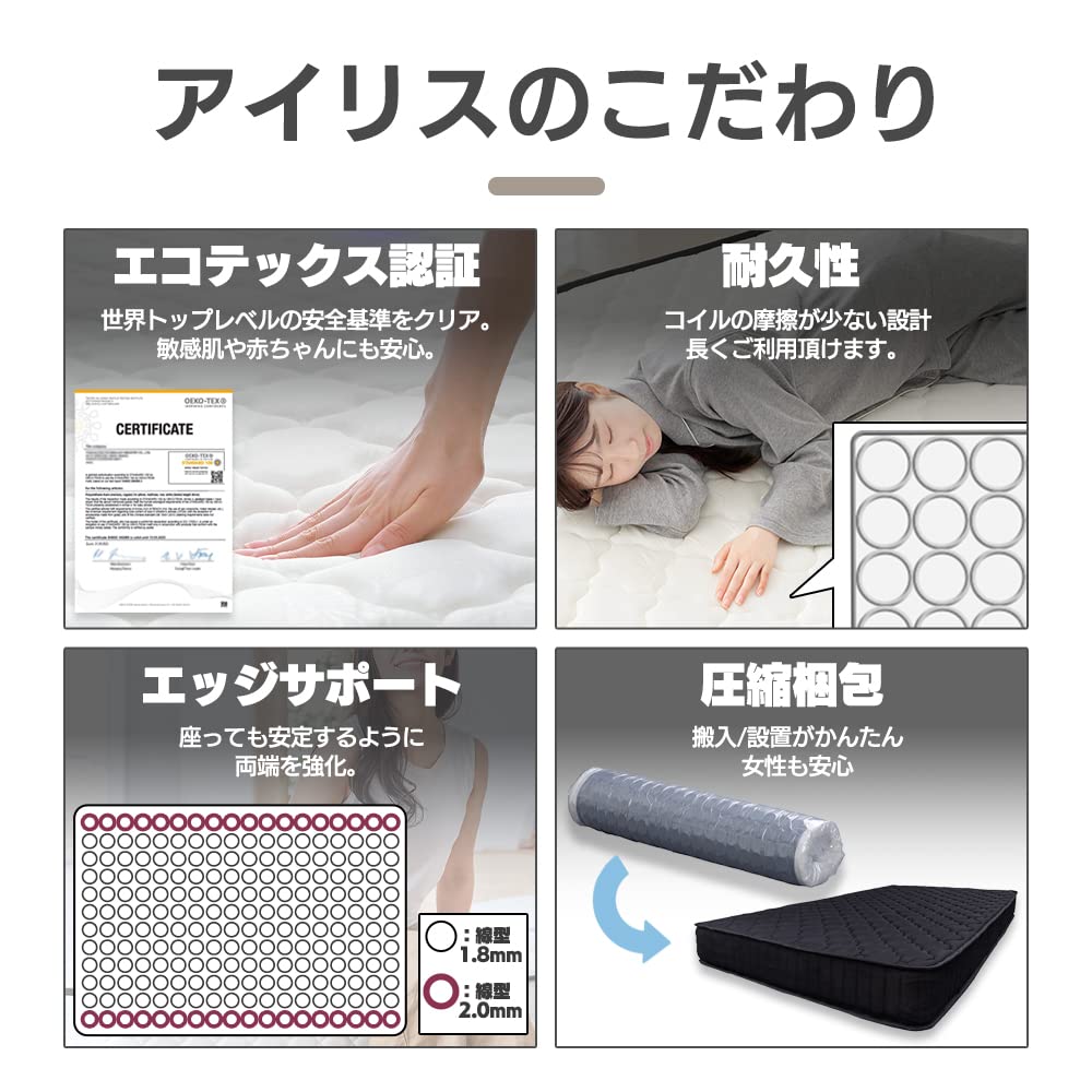 アイリスプラザ マットレス ポケットコイル 極厚20cm コイル528個 通気性 高耐久性 柔らかなウレタンクッション 体圧分散 圧縮梱包 ホワイト シングル PKMTN-SWT
