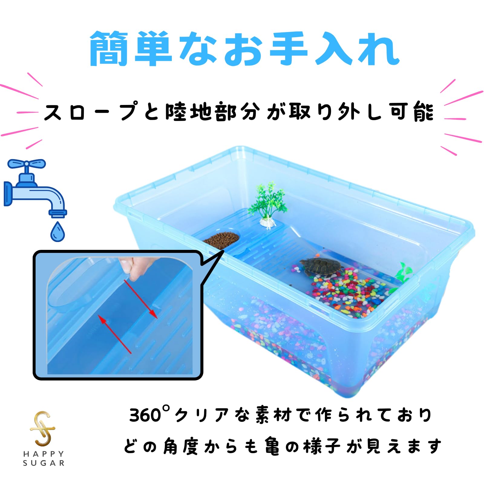 HAPPY SUGAR 亀 水槽 飼育ケース タートルボックス ウォータータンク 大きい パジャマ 餌 日光浴 かめ カメ ミドリガメ クサガメ 爬虫類(大)