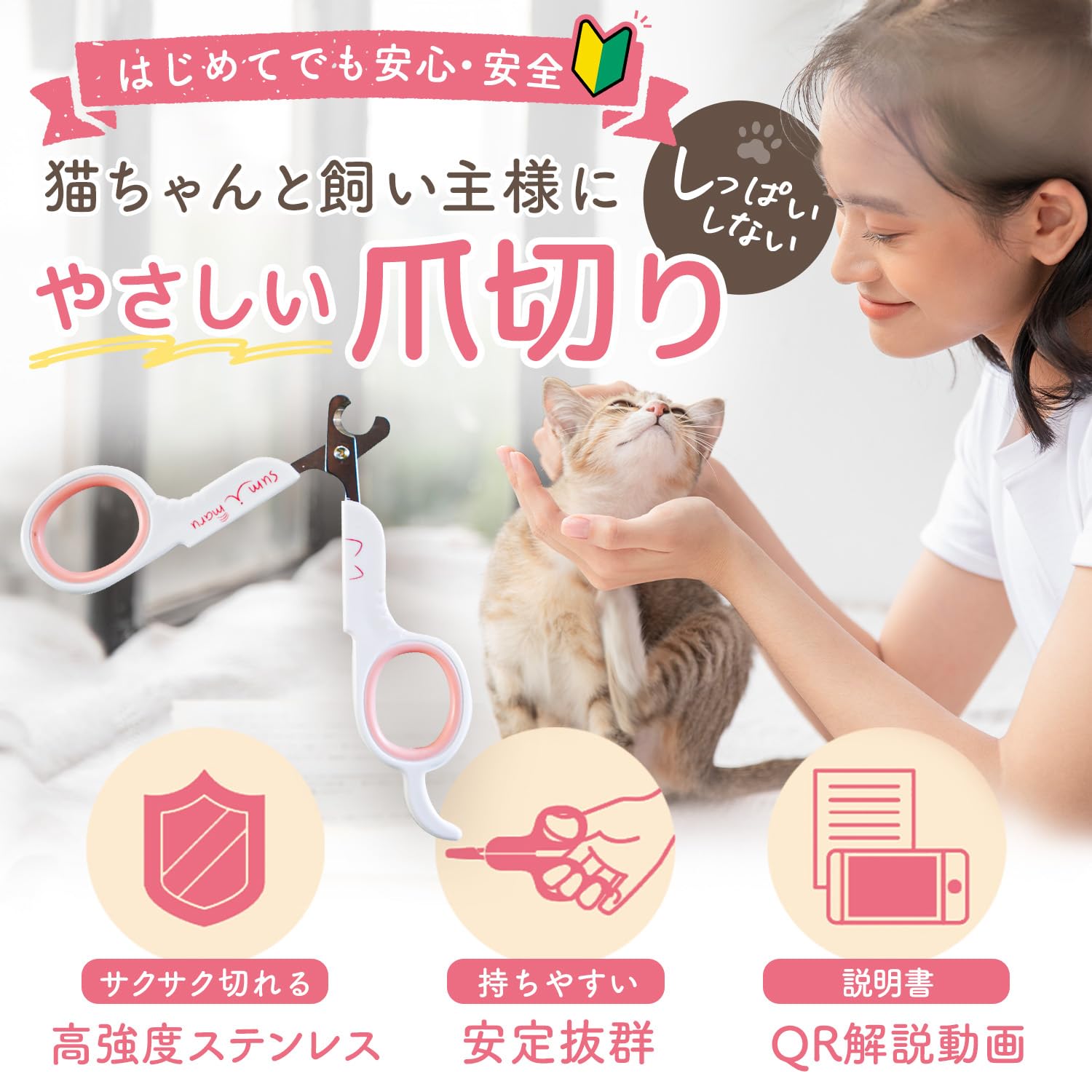 【在庫処分】猫 爪切り【猫の専門家監修】 初心者向け 解説動画 説明書付【 持ちやすい】【 失敗しない】 素早く切れる おしゃれ かわいい 猫専用 爪きり 猫用品 猫の爪切り (ピンク) | asaRulu0511
