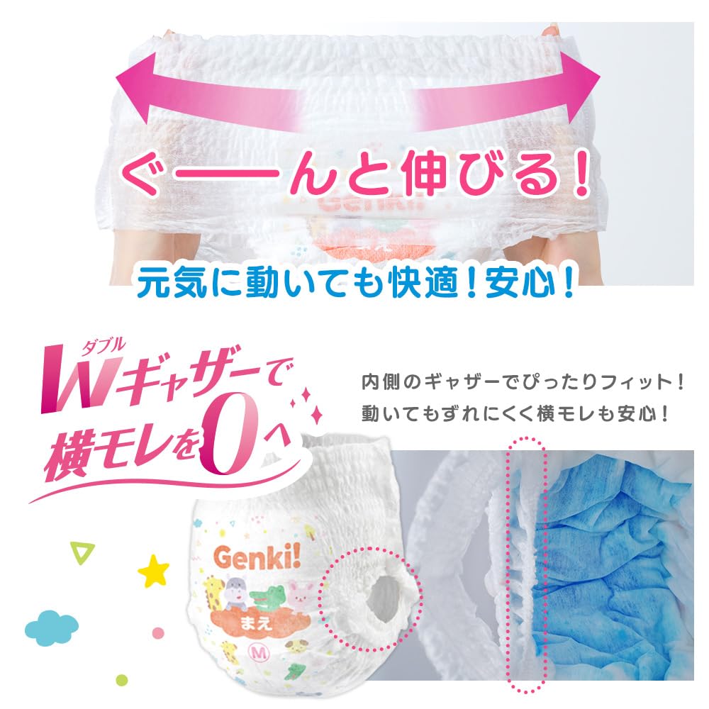 あんしん“Genki!パンツ”。赤ちゃんのデリケートな肌に、いつでもやさしく。ストレスフリーに配慮したやさしいパンツ。ベビーおむつ。