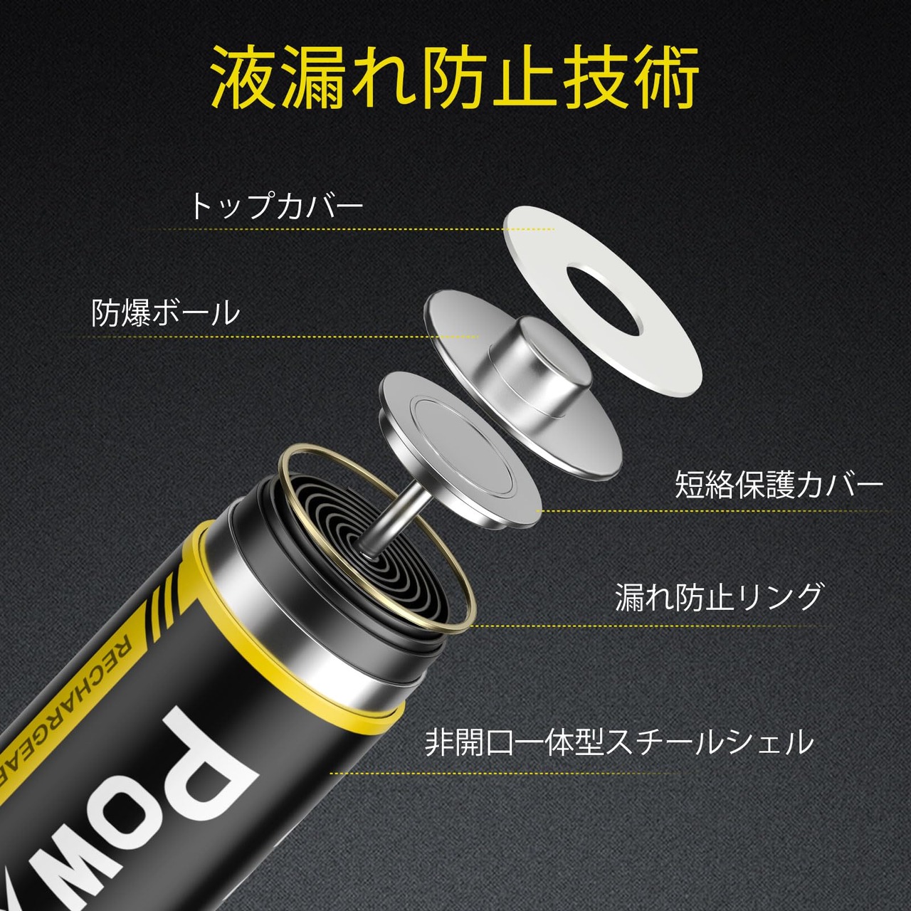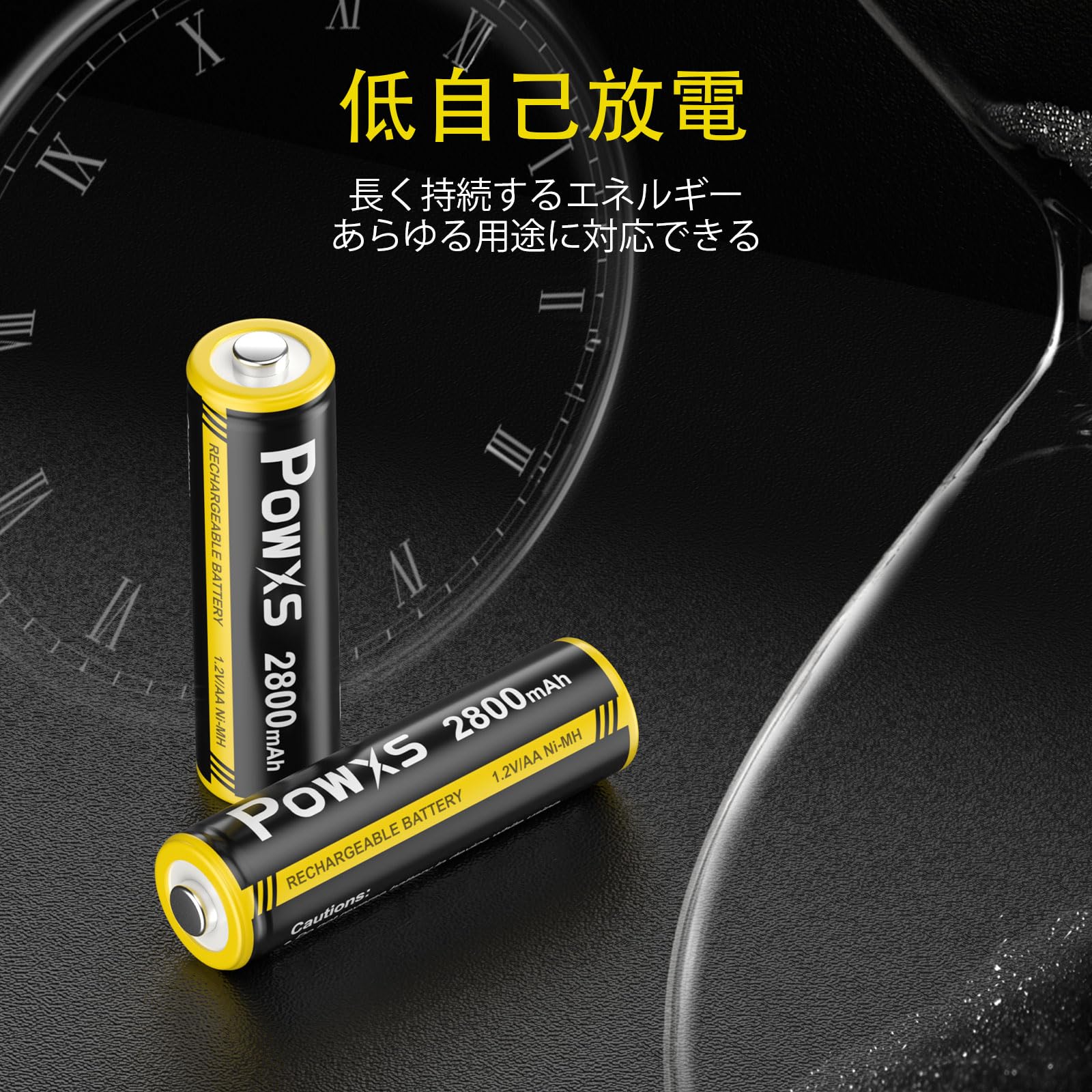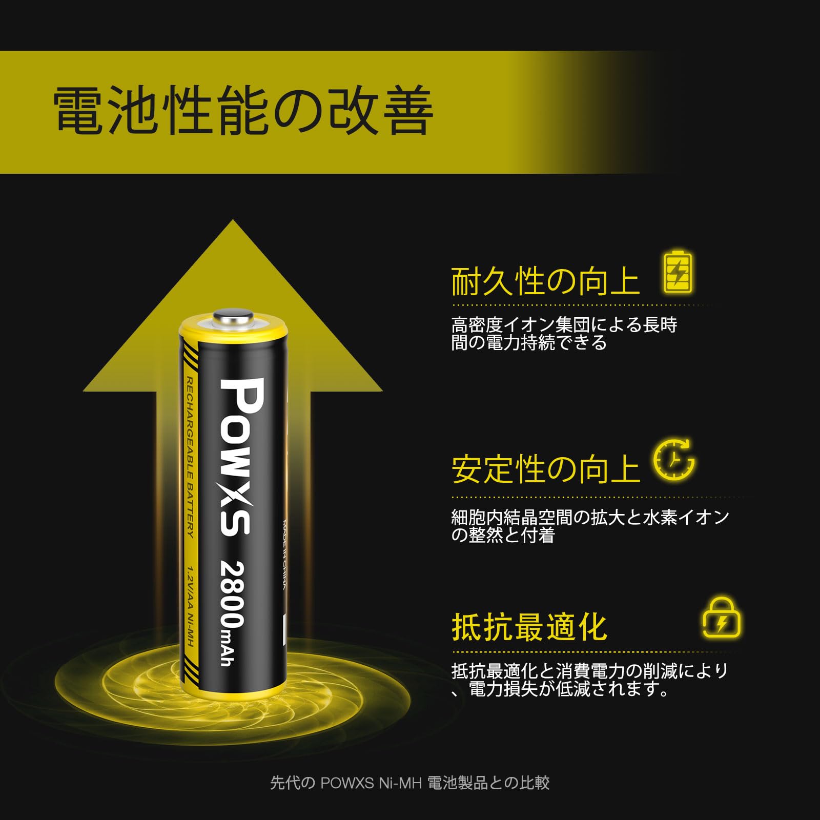 【数量限定】POWXS 単3電池 充電式 ニッケル水素 単三電池 2800mAh 約1300回使用可能 8本入り 低自己放電 液漏れ防止 充電池 単3 単3形 単三充電池(アップグレード 黒+黄) | asaRulu0511