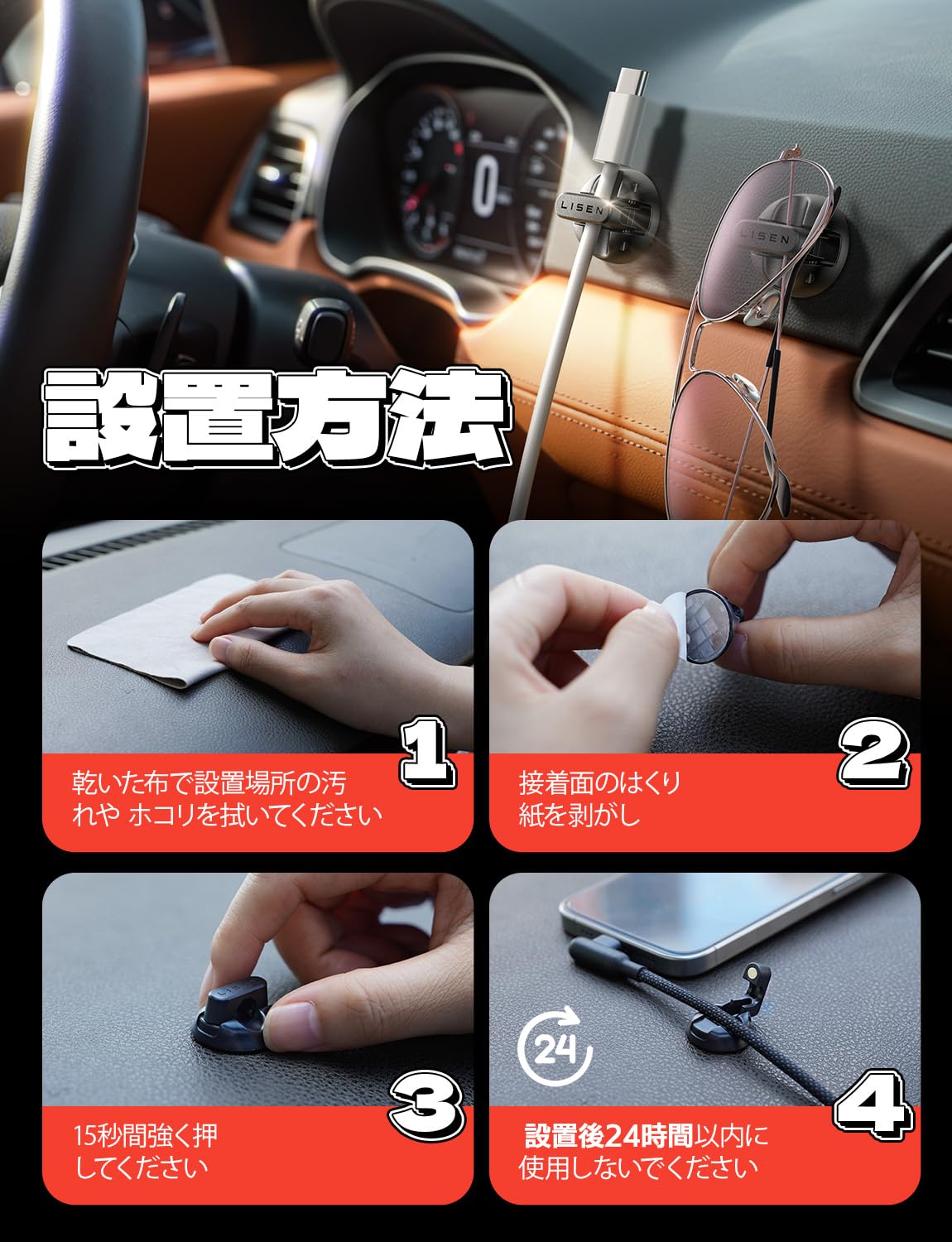 【インストールのヒント】マグネット クリップ を貼り付ける前に、表面が清潔でほこりがないことを確認してください。接着力を高めるため、30秒間しっかりと押し付け、最適なパフォーマンスを得るには、使用前に12〜24時間お待ちください。これらの手順に従うことで、製品の耐久性と使いやすさを最大限に高めることができます