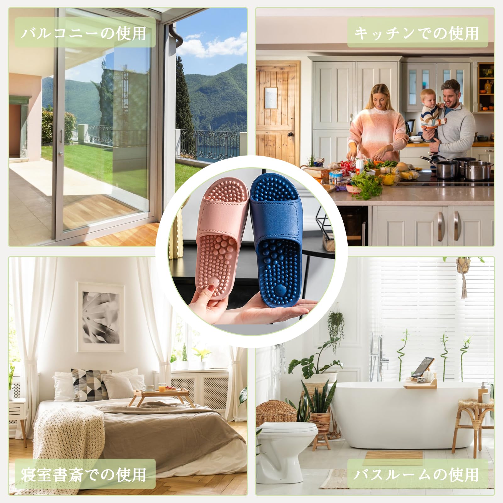 【健康効果】スリッパの突起がぐりぐりとツボを刺激します。刺激のバランスが絶妙でソフトな履き心地のサンダルです。オフィスワークや家事をしながら快適に足つぼを刺激できます。