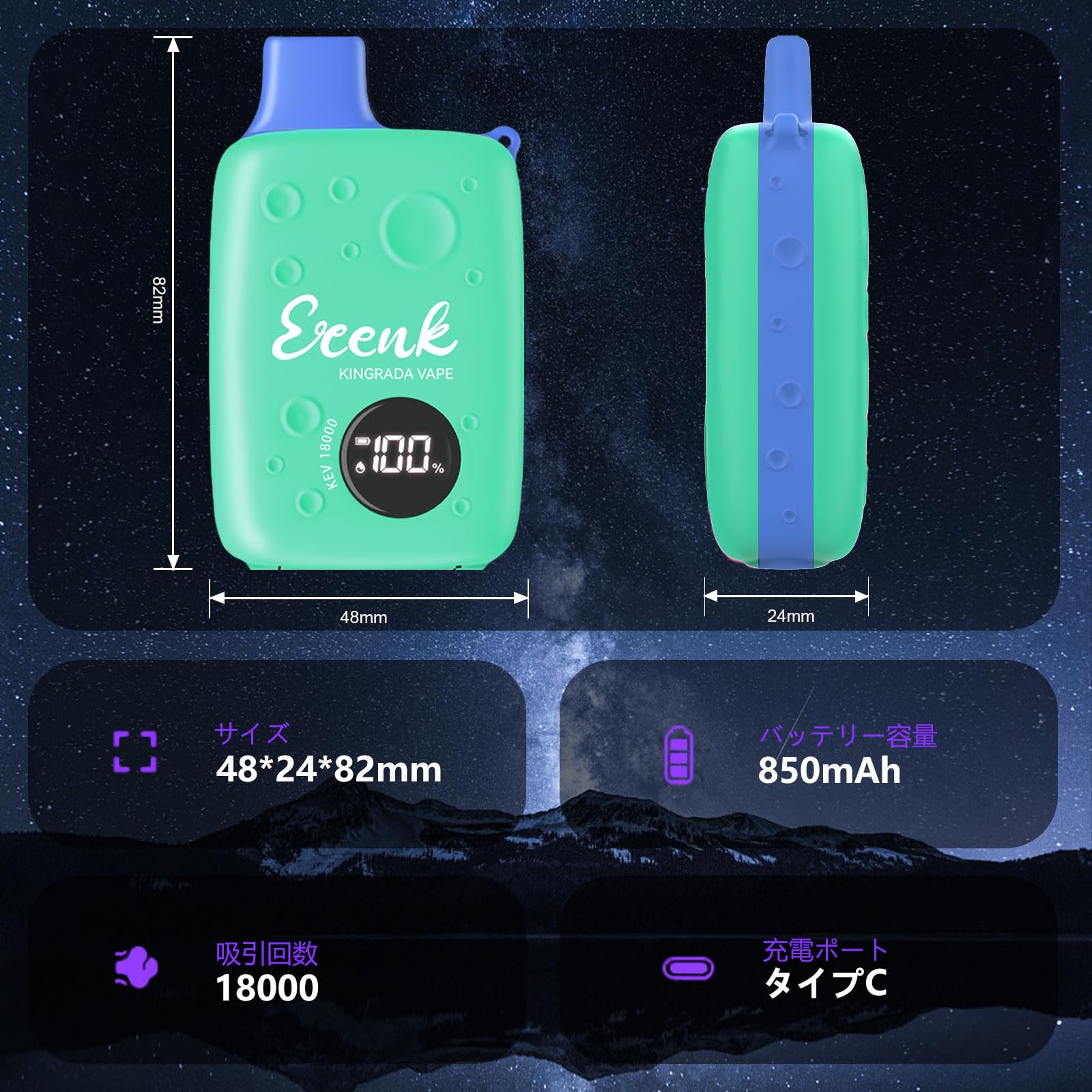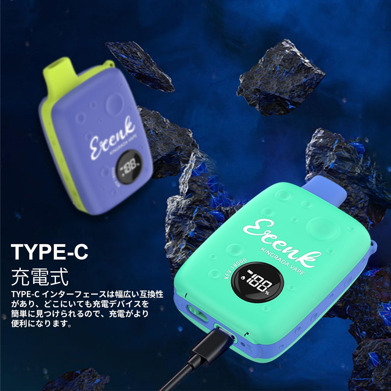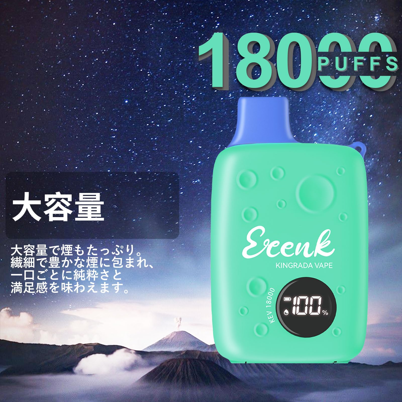 Ecenk 電子タバコ 使い捨て VAPE 18000回吸引可能 ベイプ シーシャ 10風味 爆煙 充電式 大容量 LEDディスプレイ搭載 持ち運び 水蒸気タバコ 禁煙サポート ニコチンなし 煙量調節可能 ストラップ付き (メンソール)