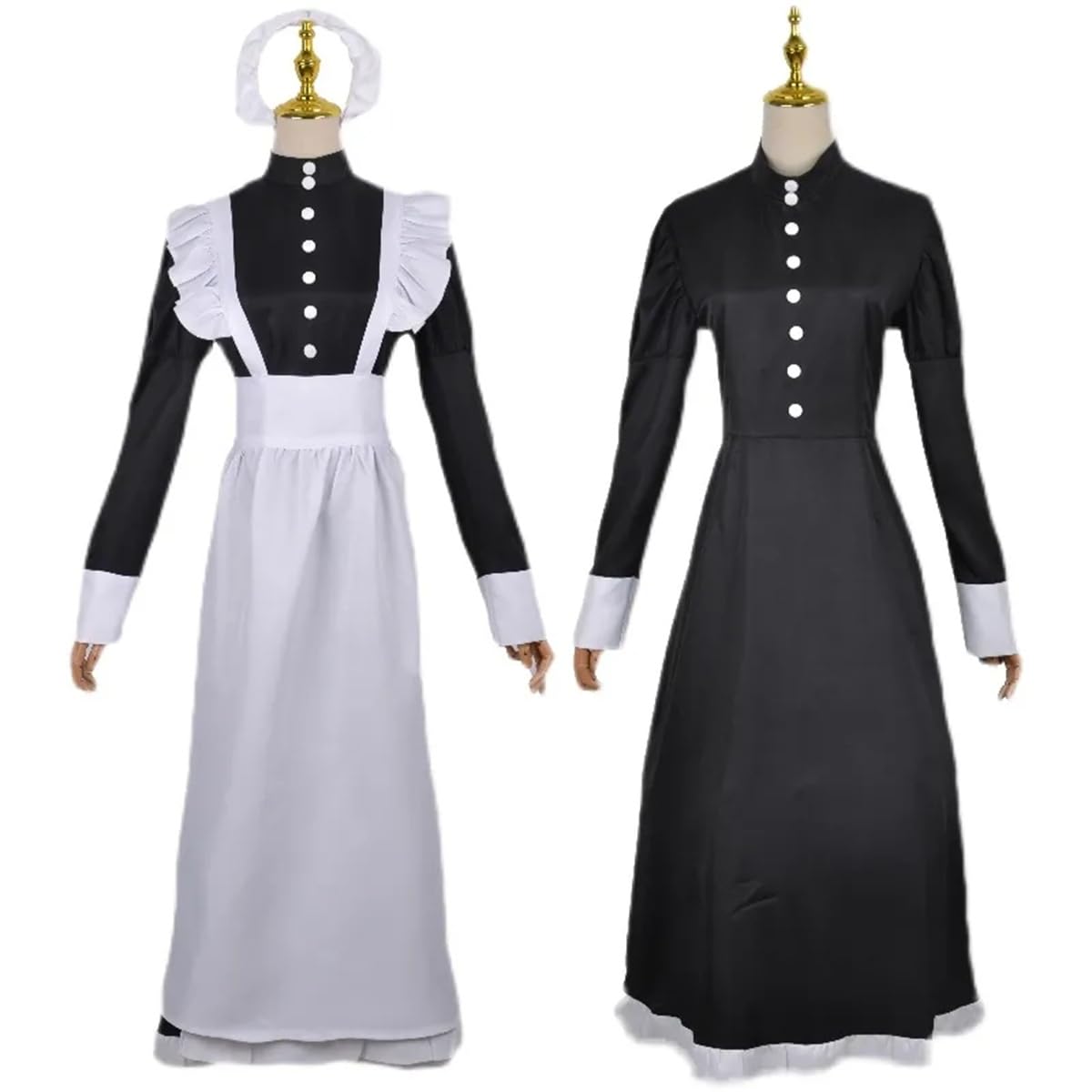 [harukita] メイド服 英国風 長袖 黒白 ロング セクシー コスプレ メイド服 3点セット ロリータ ワンピース 女性 男性用 長袖 文化祭 仮装 衣装 可愛い 人気 演出服