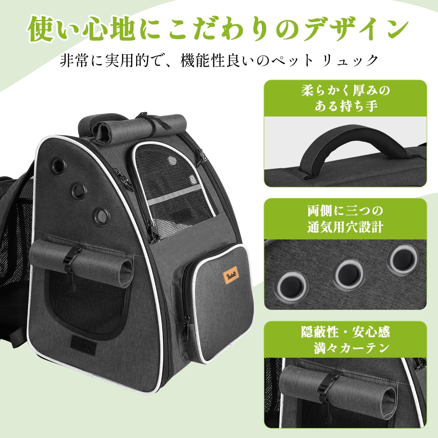 【優れた安定性】人間工学に基づき設計した幅広肩ベルトで長時間背負っても疲れません。肩への食い込みを軽減し、負担を軽減できるペットキャリー リュックです、胸元ベルトがあり、安定性いいです。丈夫な仕組みで底部はしっかりして型崩れしにくい設計、空間をしっかり確保します。ペットにも快適で過ごすことができます猫 りゅっく キャリー です。