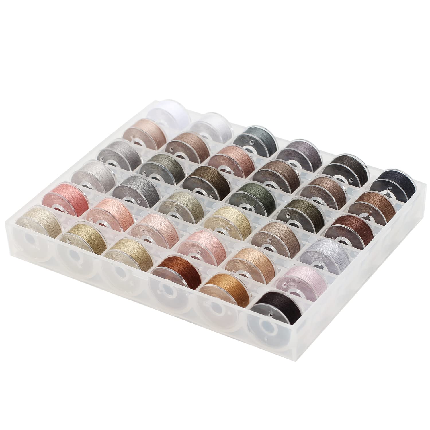 Windman ミシンボビン糸 セット 彩度の低い色 36点 ミシン下糸 ミシン糸 ボビン A型 高さ11.5mm 刺しゅう下糸 家庭ミシン用 ボビン糸 刺しゅうミシン用 家庭用ボビン付き 常備糸 マルチカラー 収納ボックス付き (カラーD組)
