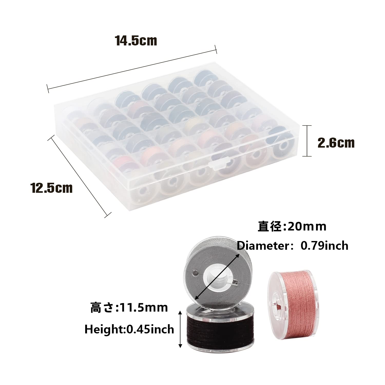 白黒の他にも、薄紫色、オリーブ色、肌色、ベージュ、カーキ、ブラウン、グレーなどの低彩度のカラーが揃っており、様々なニーズを満たせ便利なボビンセットです。 半透明のプラスチック収納boxも付きます。