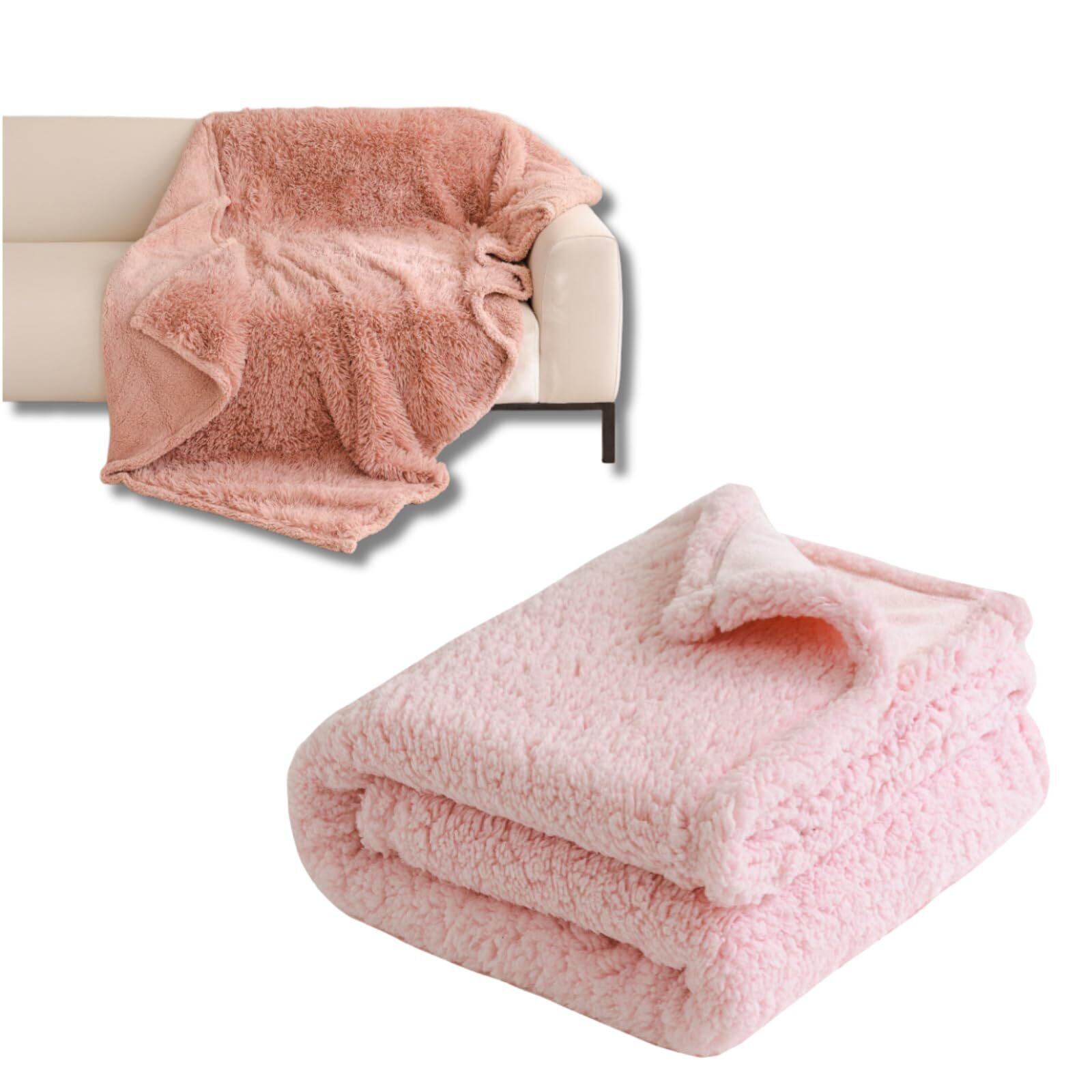 高品質なフランネルと極細ファー素材でふわふわ、もこもこ気持ちいい触り心地のブランケット、ピンク