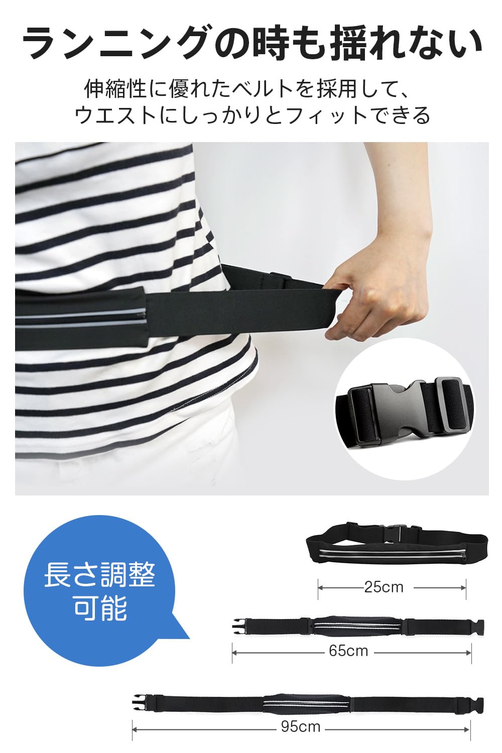 【安定感のあるデザインと調節可能なベルト】アジアの体型に基づいて、ほとんどの男性と女性が使用できるように、ベルトの長さを約65-95cmまで調節可能です。また、弾性に優れた素材を使用しているため、激しく動いてもポーチが安定し、揺れにくいです。