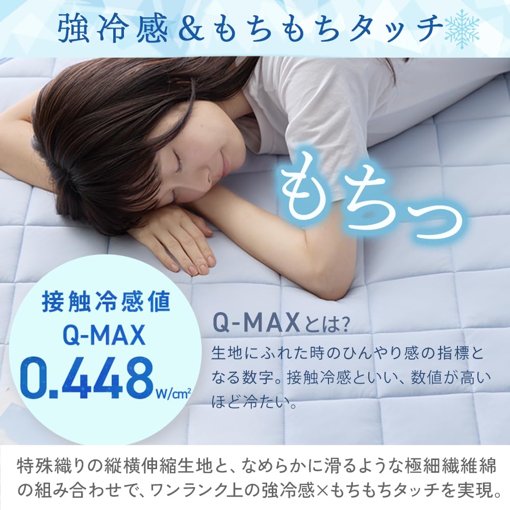 アイリスプラザ 敷きパッド 新接触冷感 ムレ軽減ひんやり&もっちりシーツ キング Q-MAX0.448 速乾加工 メッシュ裏生地 抗菌防臭 制菌 丸洗いOK スーパーひんやり アイスブルー