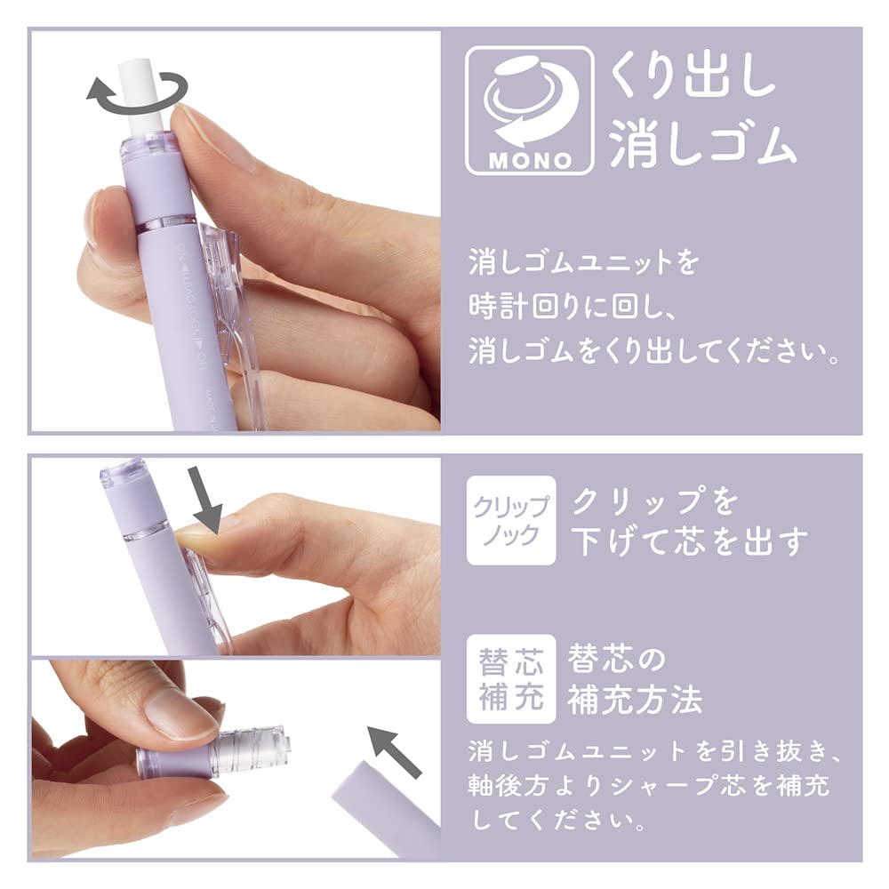 【新着商品】トンボ鉛筆 シャーペン MONO モノグラフ 0.5mm ピンク・パープル 2本セット 替え消しゴム付き PCA-341BAZ