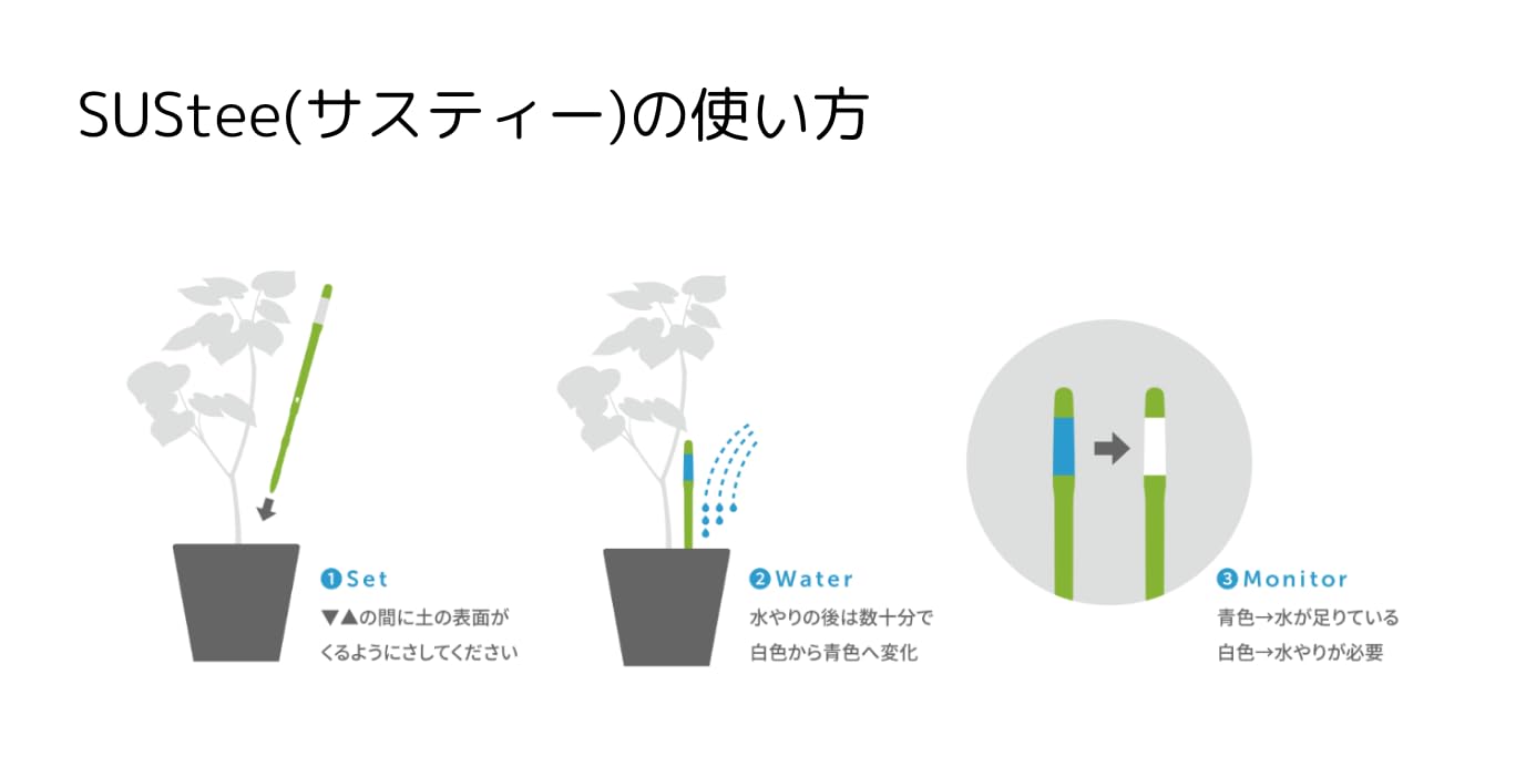 ※SUSteeは、根が水分を吸えるか状態かどうかを色の変化で示します。つまり、白くなったら水やりのタイミングです!