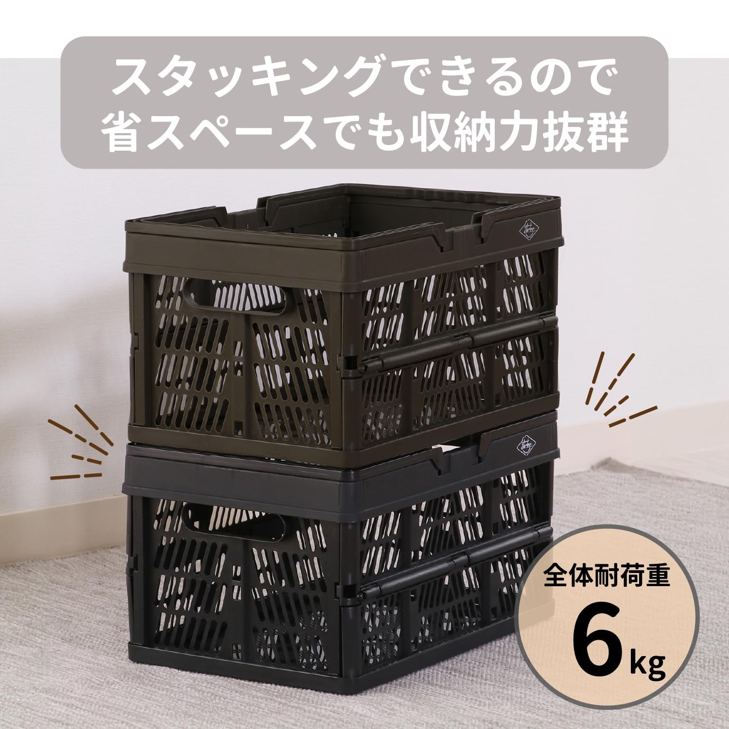 不二貿易(Fujiboeki) 折りたたみ コンテナ かご 幅38×奥行25.5×高さ20㎝ ブラック 取っ手付き 持ち運び簡単 内容量15L Mサイズ 86446