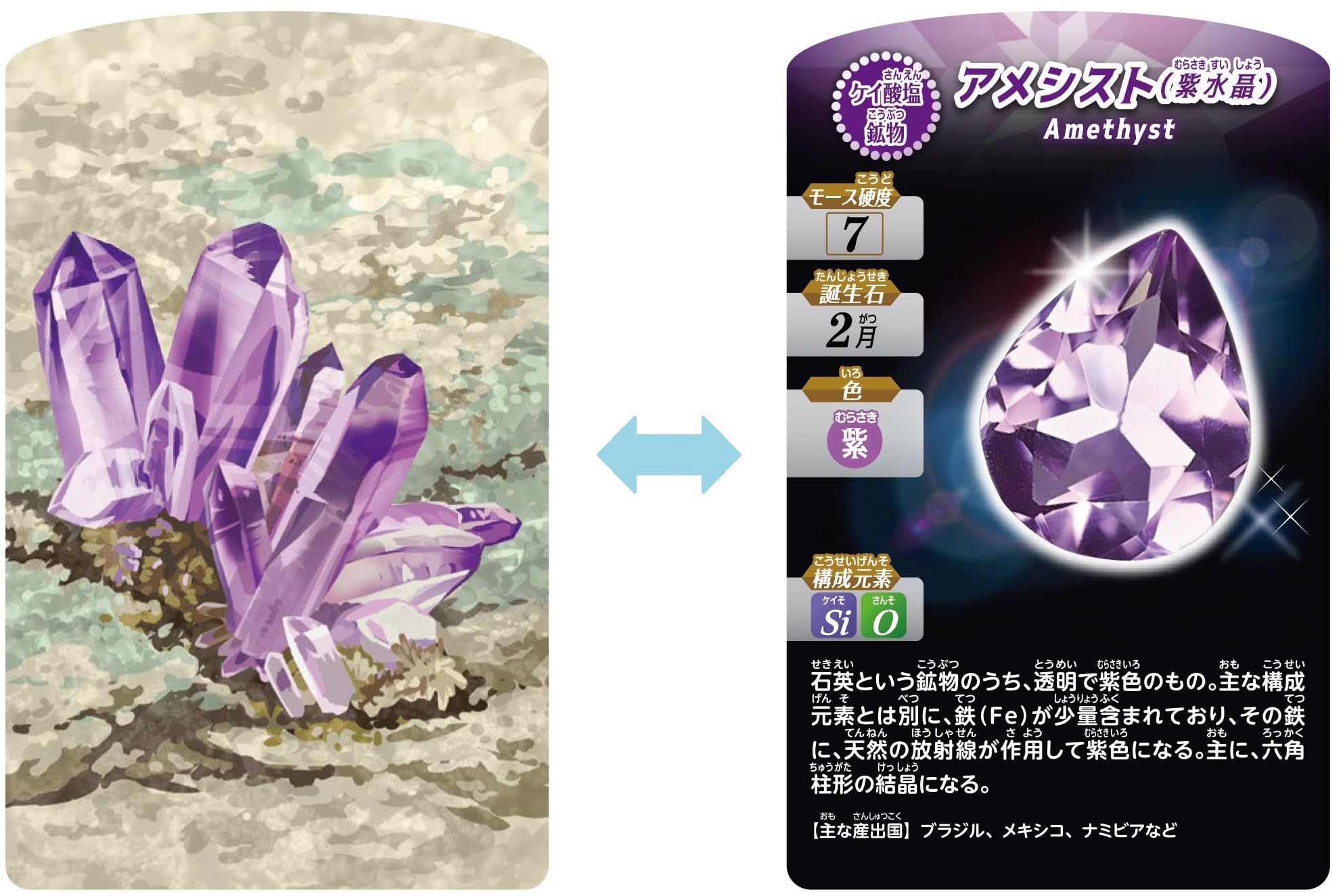 原石の写真から宝石を探すゲーム。遊びながら学べ、好奇心探求心を育み、鉱物や元素にも興味が広がるカードゲームです。