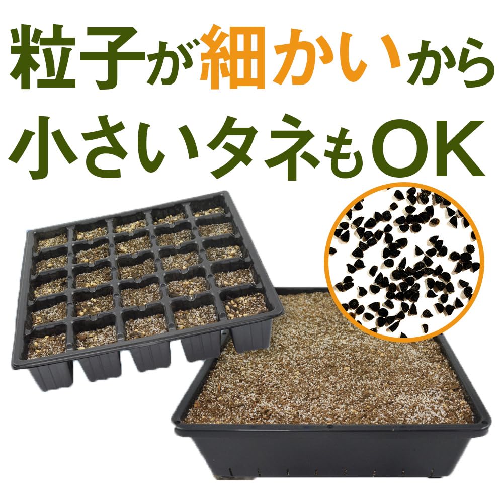 特長:生育を早め丈夫な苗に育てる活力材、水の浸透性が優れた特殊パーライトを配合。粒子が細かいので、小さな種にも使えます