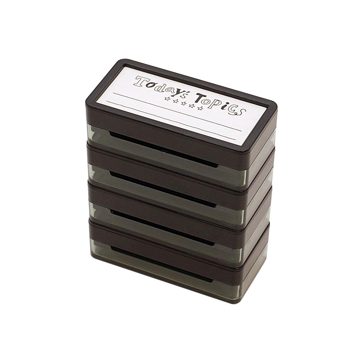 ノートやダイアリーのカスタマイズにぴったりのスタンプです。油性インキなので、スタンプを押した上から水性ペンで色を塗ってもにじみません。柄の中に文字を書きこんだりカラフルにデコレーションしたり、アレンジの幅がひろがります。
