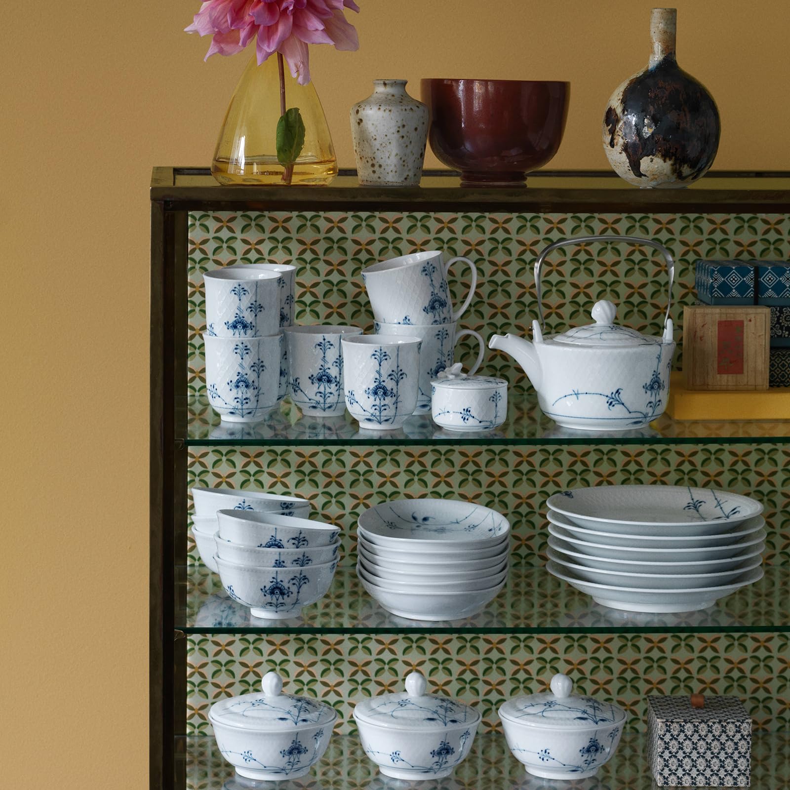 1880年代から続く伝統的なロイヤルコペンハーゲンのパターンのブルーフルーテッドを モチーフに和洋中選ばずに使える新パターンとして発表されました。