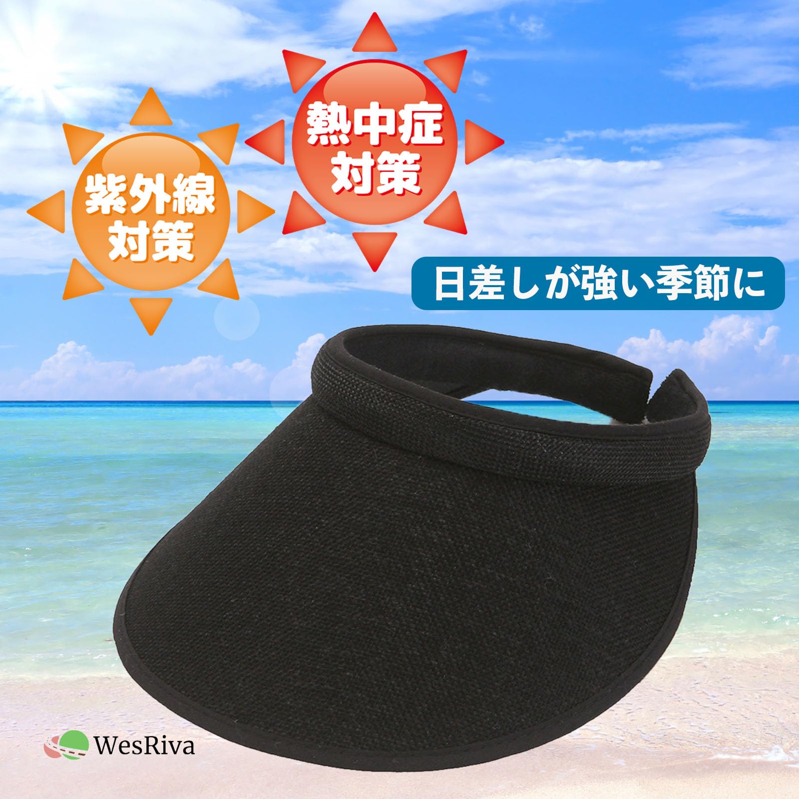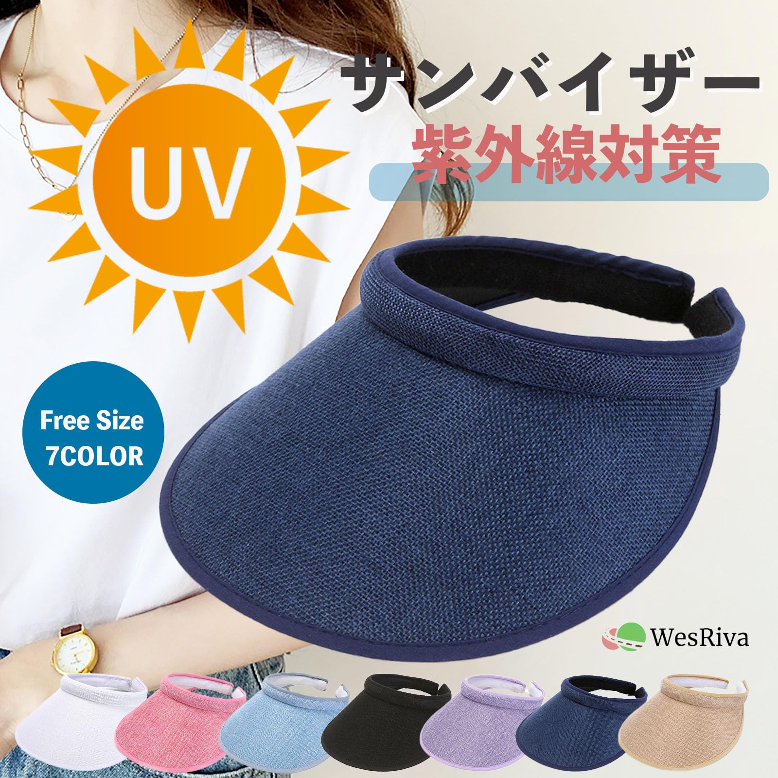【特価セール】[WesRiva] サン バイザー フリー サイズ 帽子 UV 紫外線 カット 日除 ブラック ネイビー カーキ ピンク ベージュ レディース 日焼け 防止